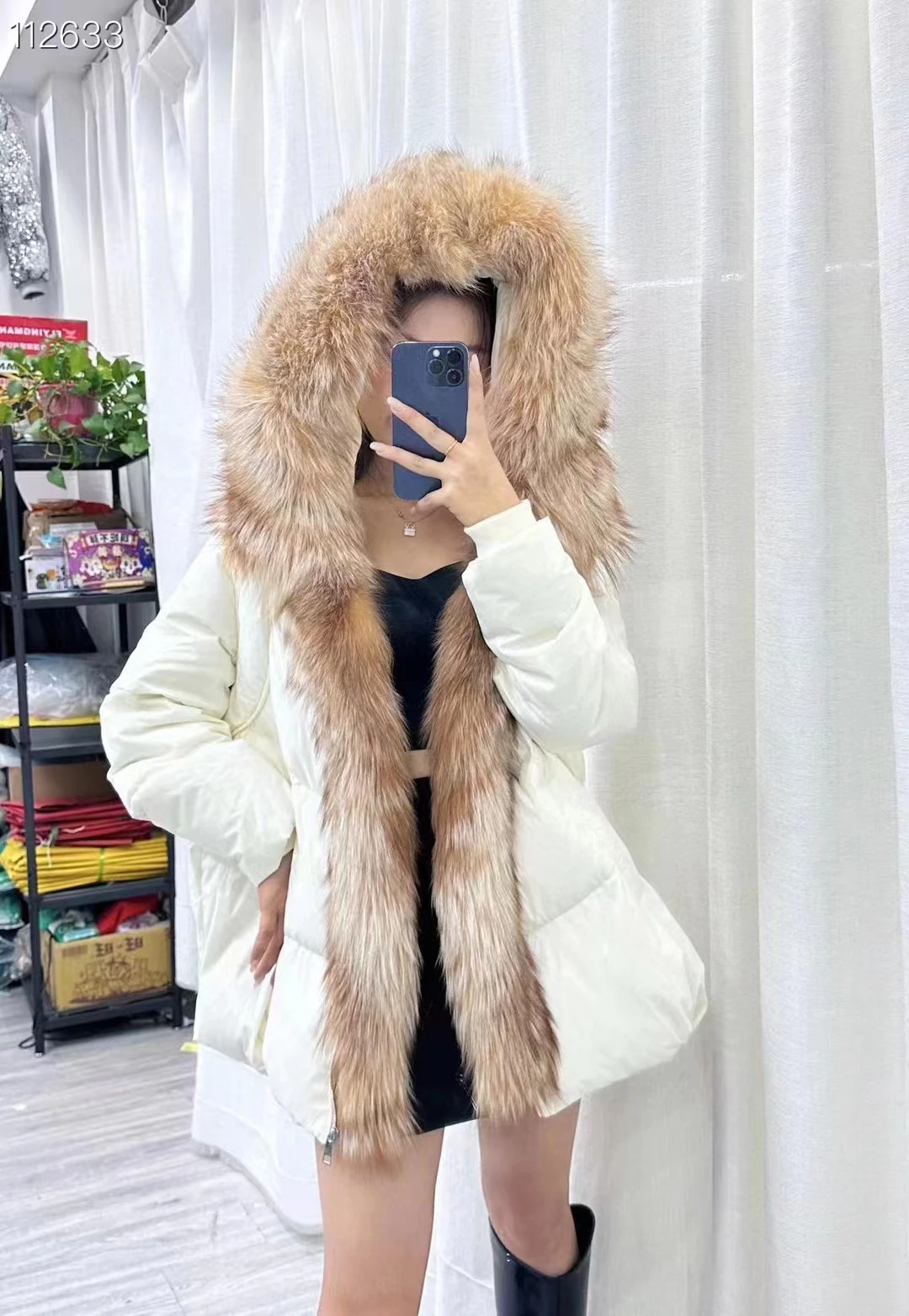 LAVELACHE Winter Women Jacket Luxury White Duck Down Coat Female Large Fox Fur Collar Outerwear Thick Warm Fashion Streetwear