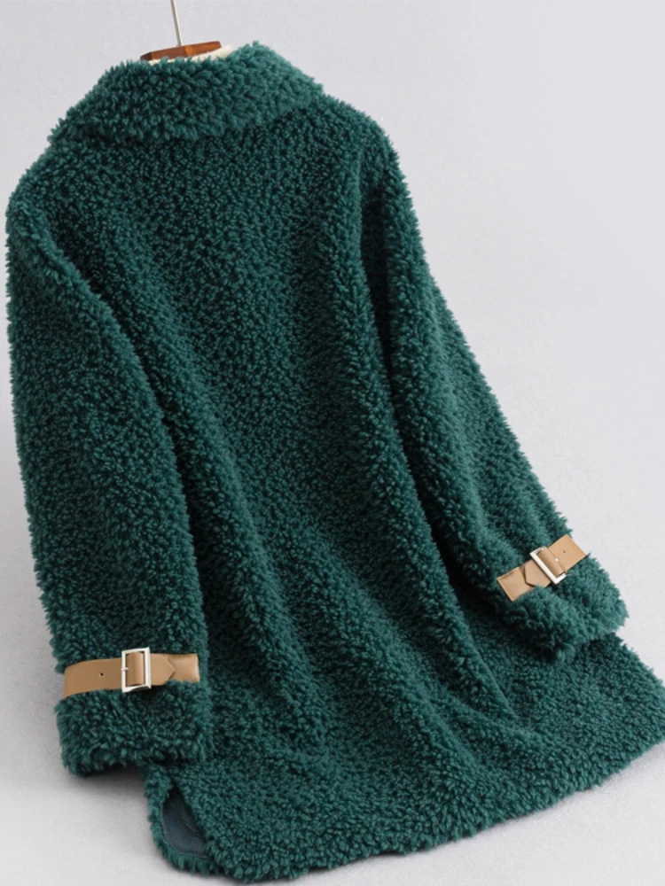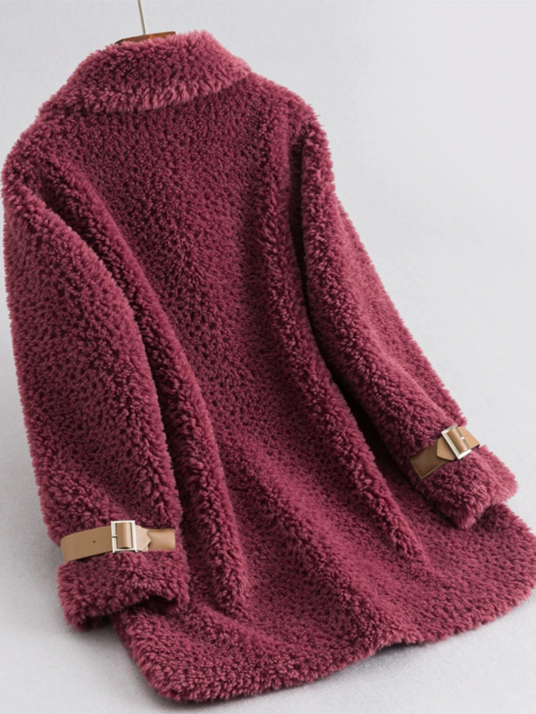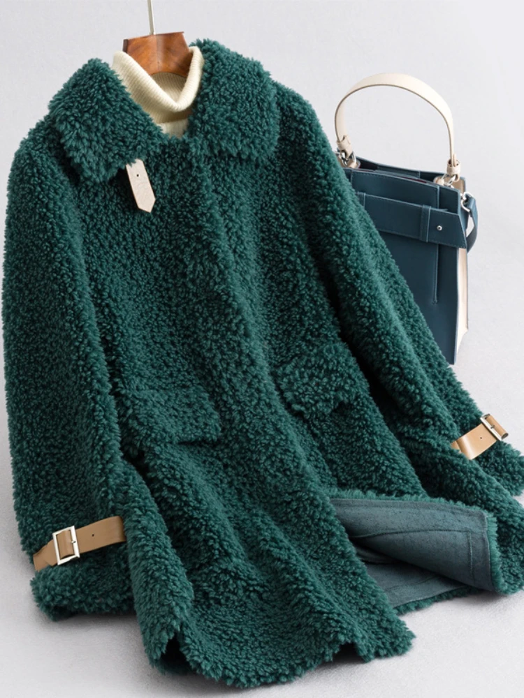 Real Natural Wool Fur Coat Single Breasted Stand Collar Weave Winter Jacket Women Loose Thick Warm Fashion Streetwear
