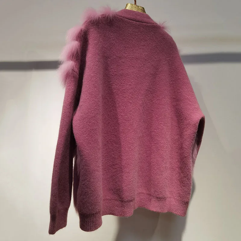 2023 Loose Knitted Real Fox Fur Coat Long Sleeve Loose Casual Autumn Warm Luxury Genuine Fur Jacket Outwear Female Genuien Fur