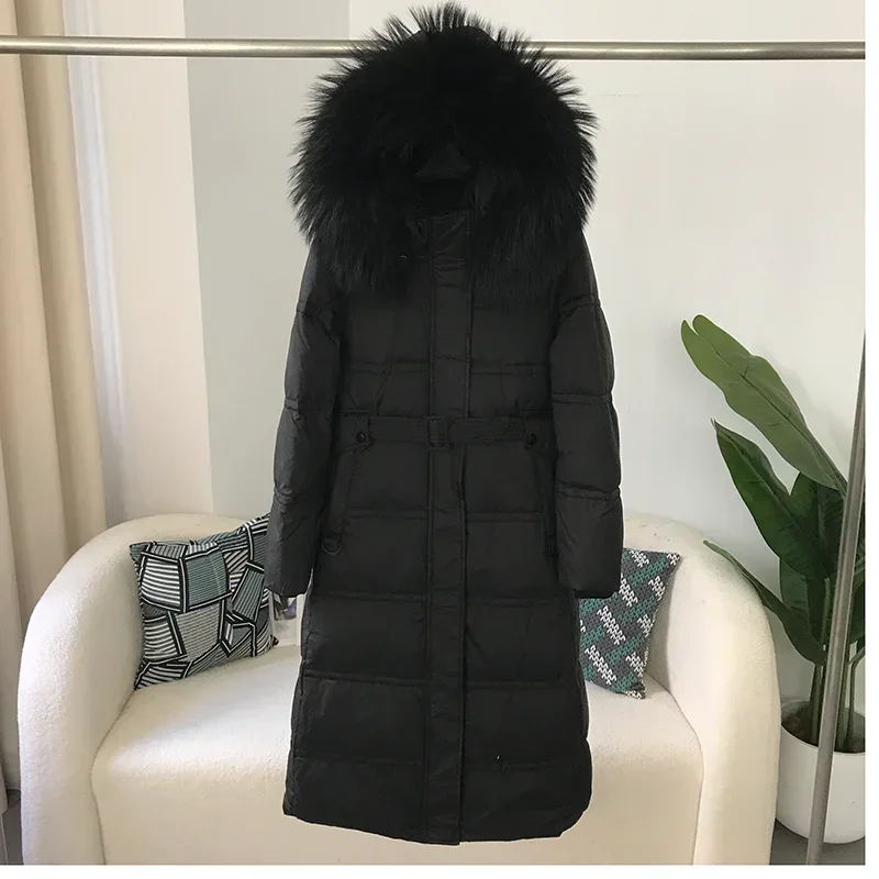 FURYOURSELF 2023 New Long Winter Jacket Women Real Raccoon Fox Fur Collar Natural Warm Duck Down Coat Belt Outerwear Streetwear
