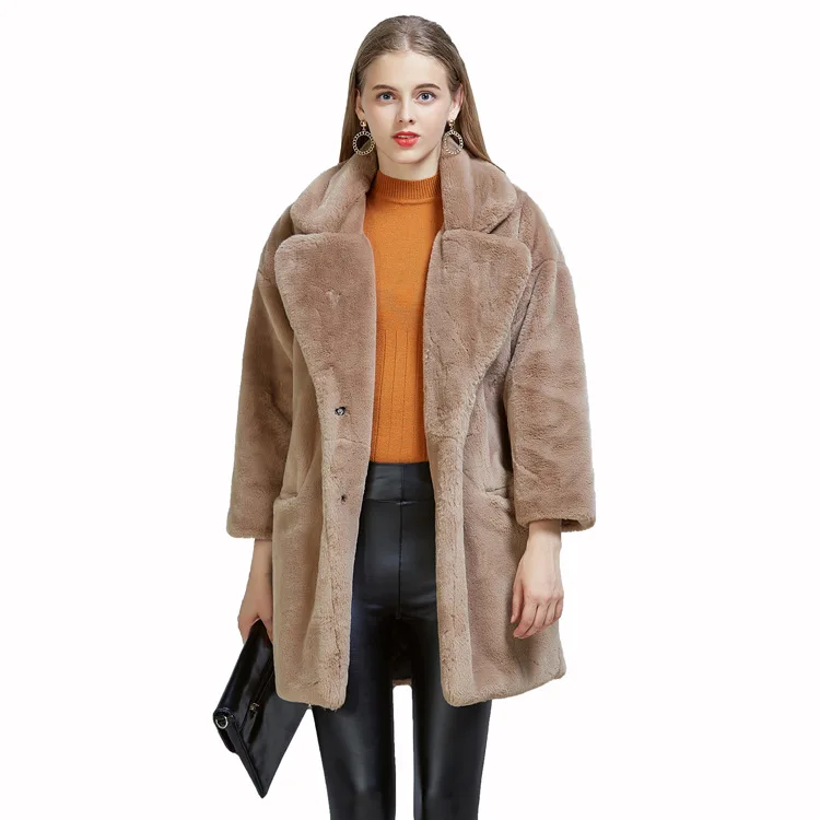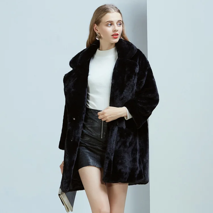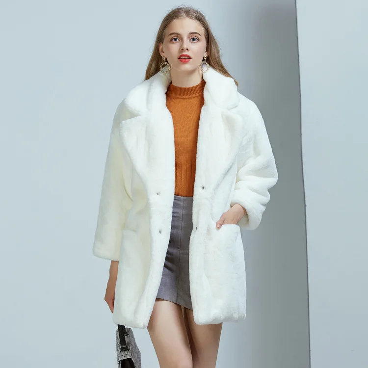 Imitation rabbit fur coat women's imitation fur medium long suit collar loose winter women's coat