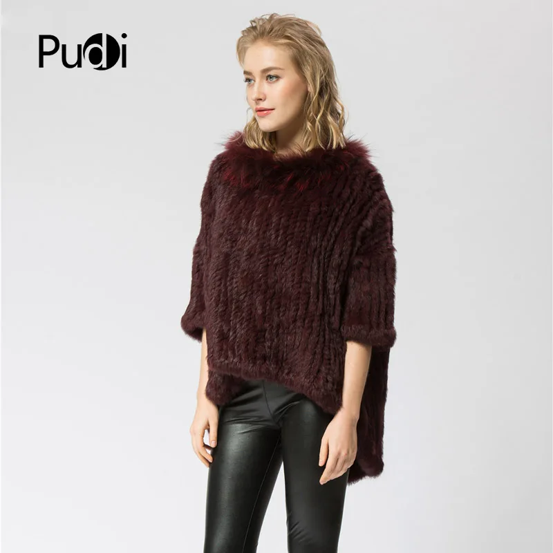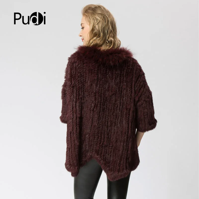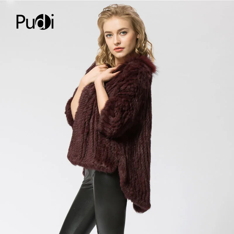 CR056 Knitted Knit New Real Rabbit & Raccoon Fur Coat Overcoat Jacket Women's Winter Warm Genuine Fur Shawl With Raccoon Color