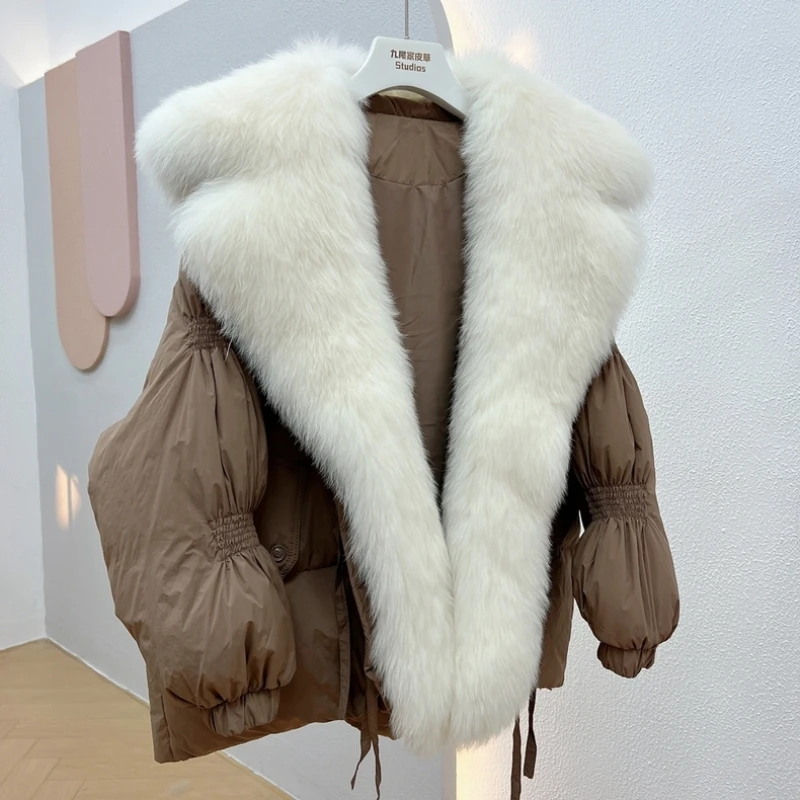 Hot Sales 2023 Women's Loose Placket High-End Fox Fur Big Fur Collar White Duck Down Down Jacket Winter Coat Short Streetwear