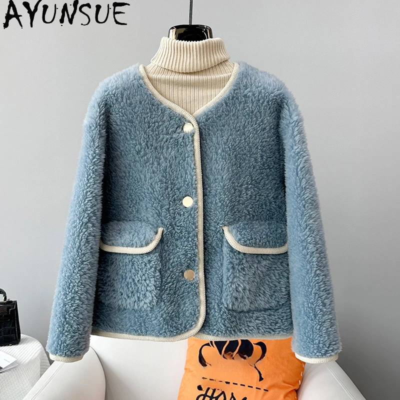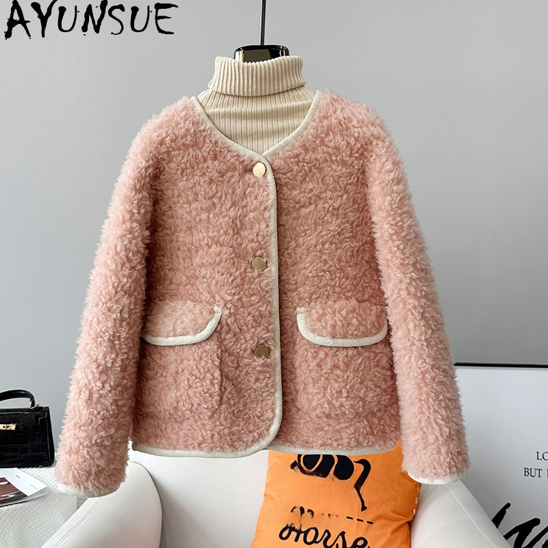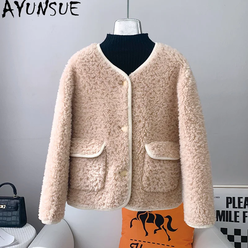 AYUNSUE Fashion 100% Sheep Shearing Jacket Women Fur Coat Short Wool Coats Female Clothing Korean Style Wool Jackets Casacos