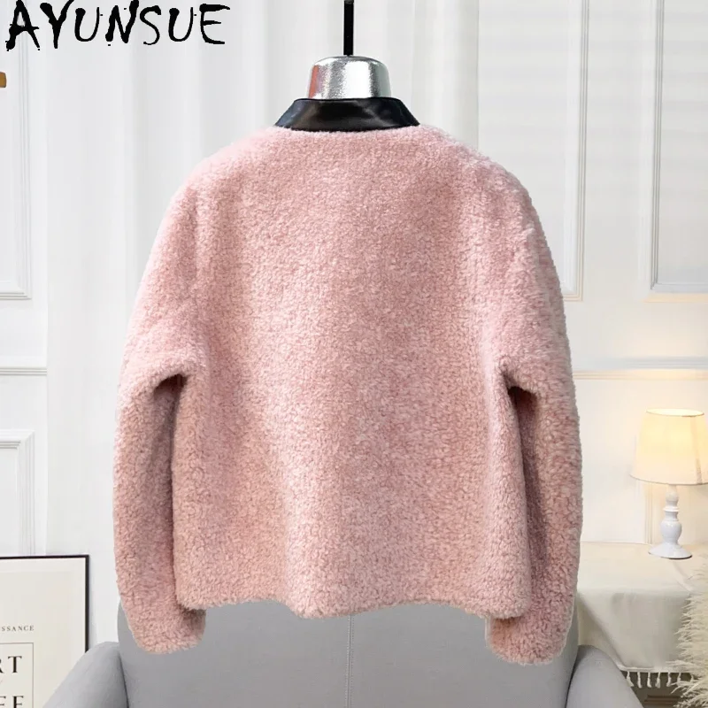 AYUNSUE 2023 New Autumn Winter Lamb Wool Jacket for Women Korean Style Polo Collar Short Sheep Shearing Coat Roupas Femininas