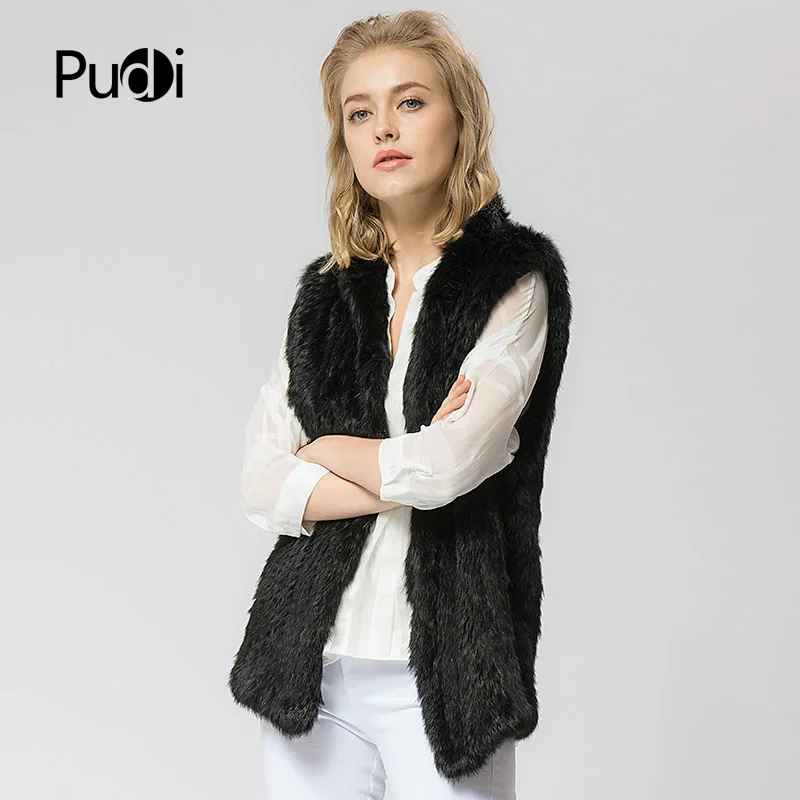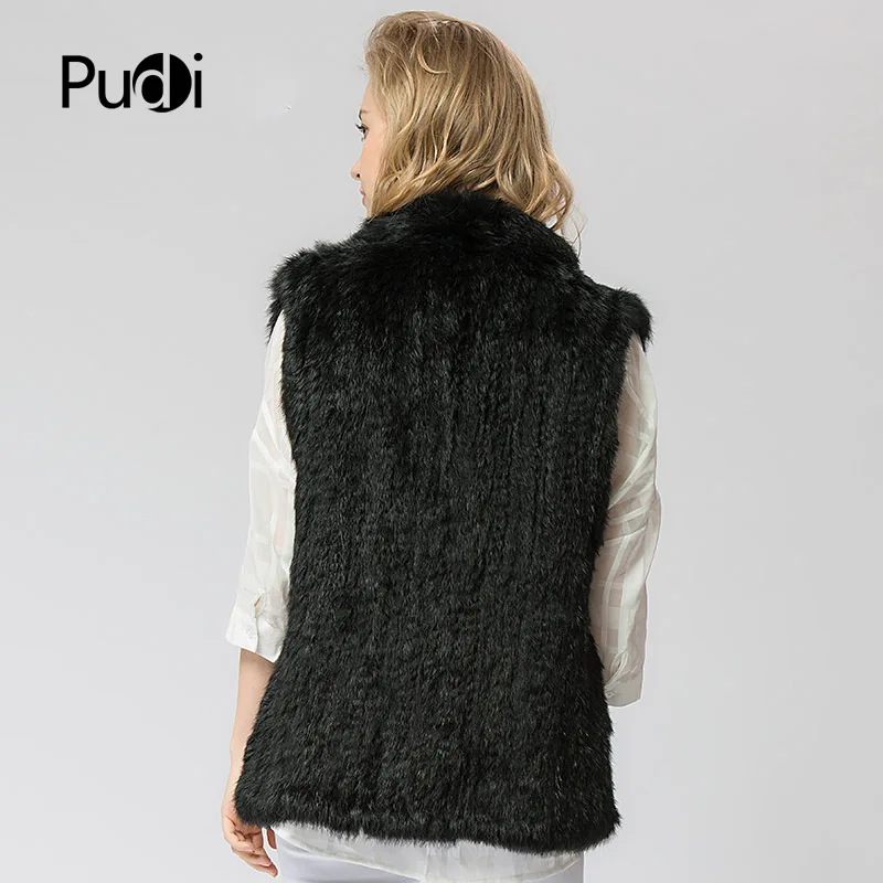 VR025 Knitted Knit New Real Rabbit Fur Vest Overcoat Jacket Women's Winter Warm Genuine Fur Vest Stand Collar