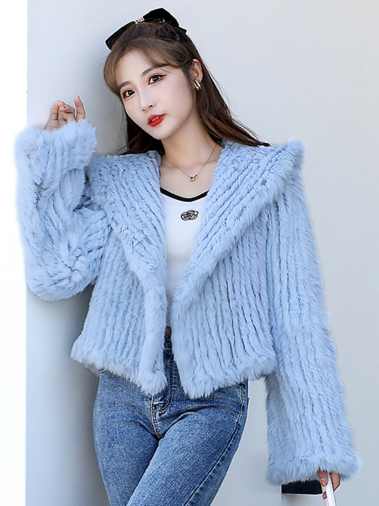 MENINA BONITA 2022 New Fashion Luxury Rex Rabbit Fur Winter Jacket Women Real Fur Coat Knitting Thick Warm Outerwear