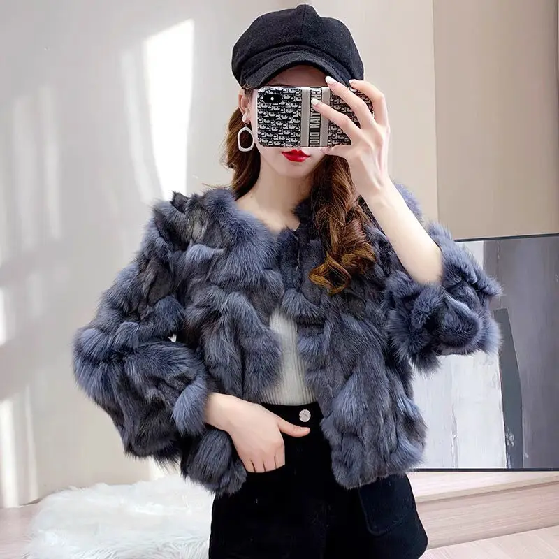 Woman High Quality Coat Winter Female New Natural Fur Fashion Outerwear Ladies Warm Real Fox Overcoat G530