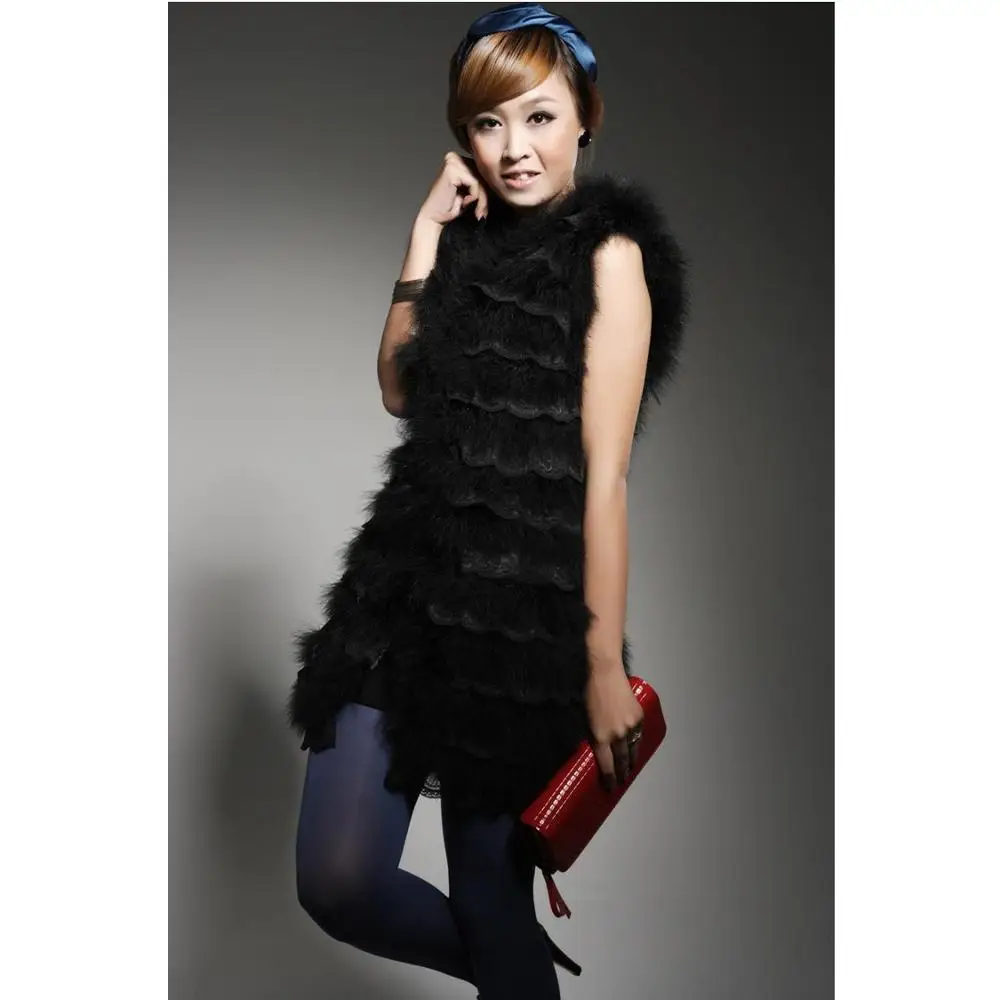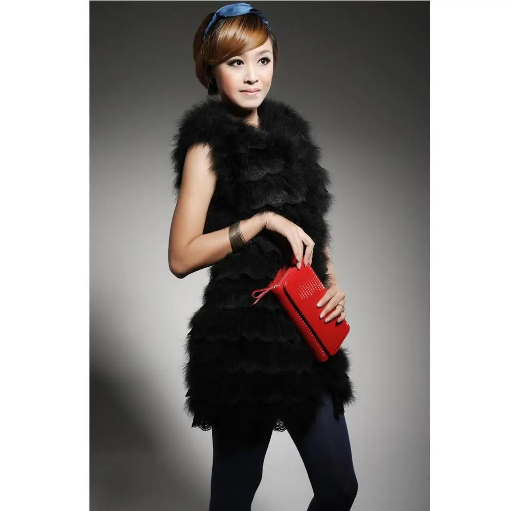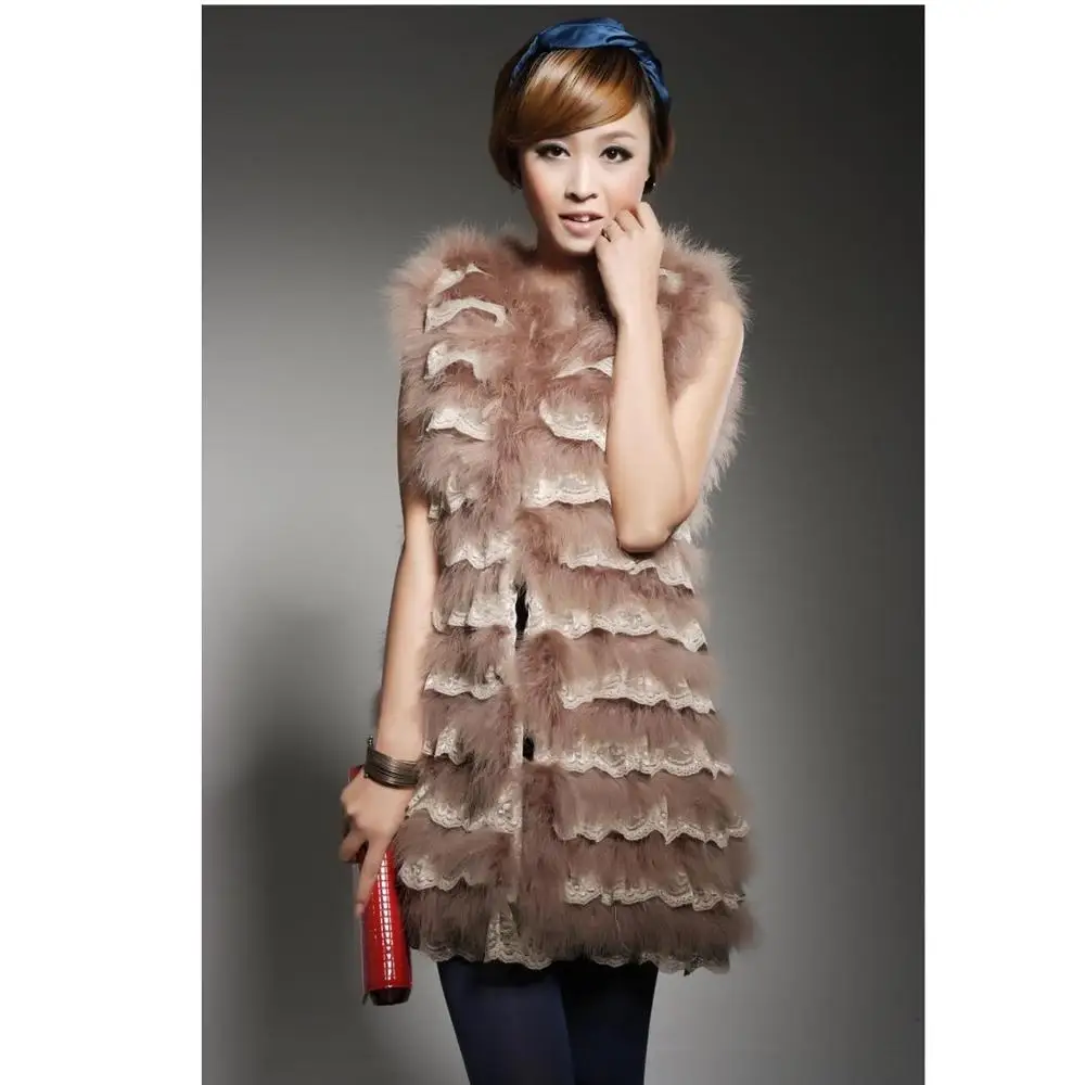 Women Genuine Ostrich Feather Fur Vest With Lace Trimming Waistcoat Autumn Winter Jacket Female Clothing V27