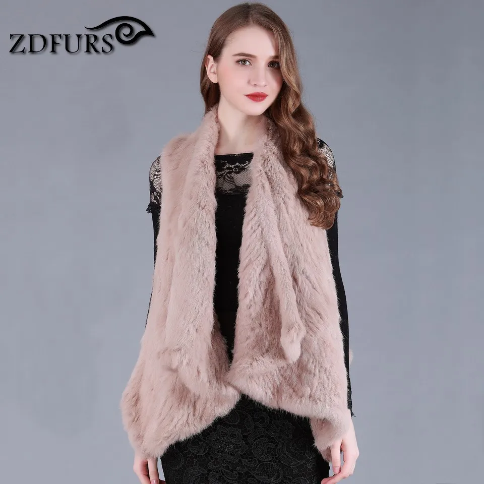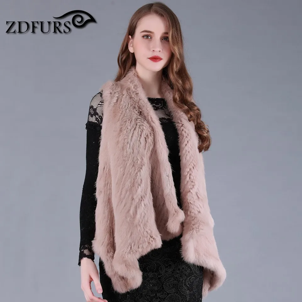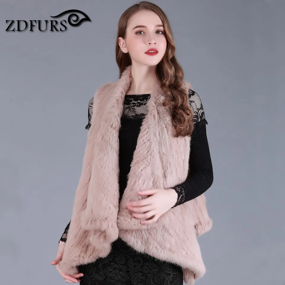ZDFURS * New Fashion Real Knitted Rabbit Fur Vest Genuine Rabbit Fur Waistcoat Rabbit Fur Gilet Hot Sale