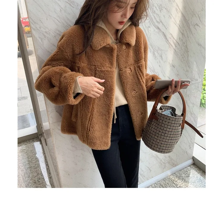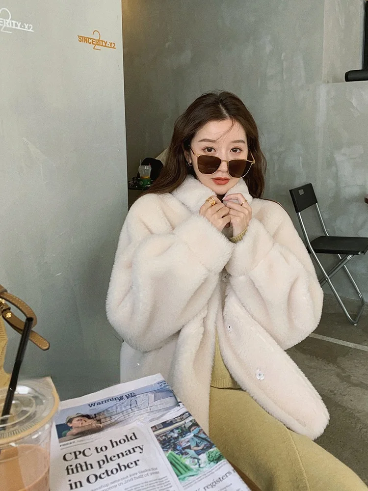 MENINA BONITA 2022 New Winter Fashion Turn-duwn Collar Women Fur Coat Grain Fleece Loose Thick Sheep Shearing Lamb Fur Warm Coat