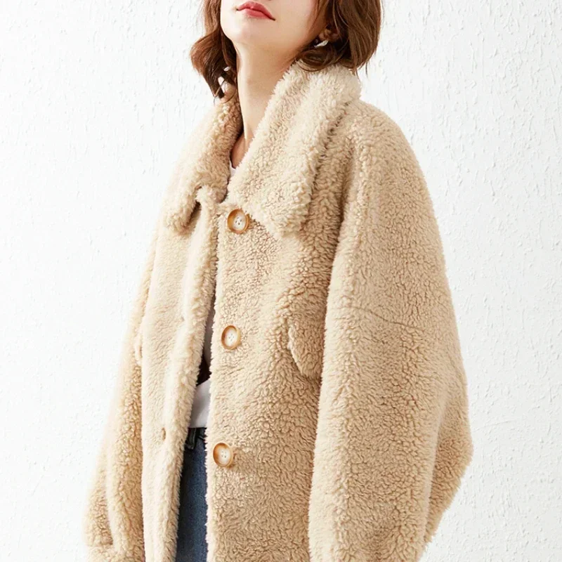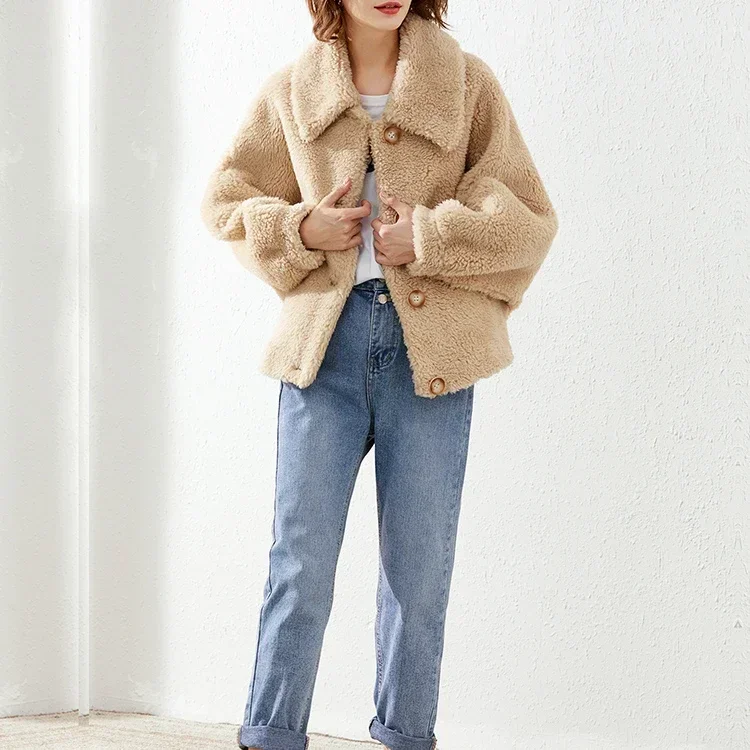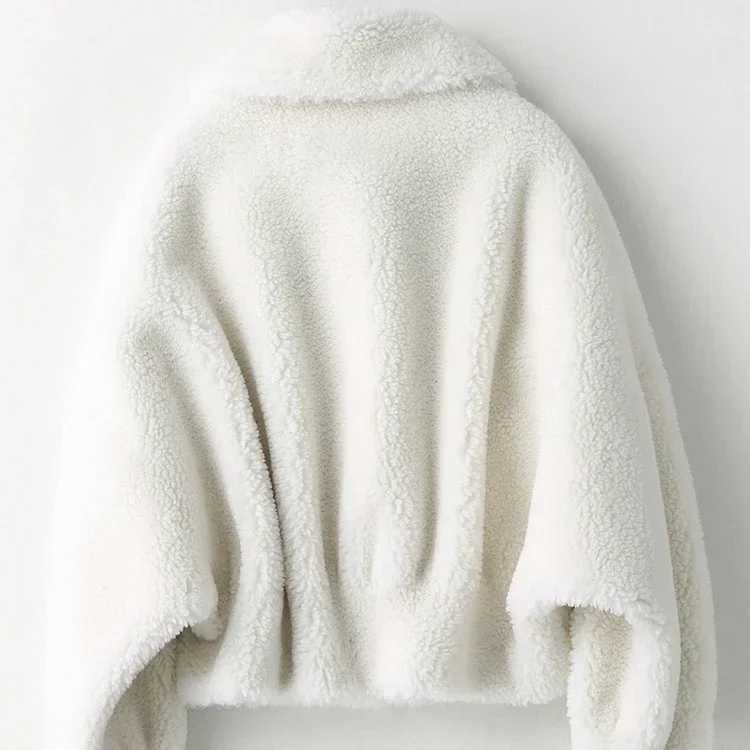 Winter Sheep Shearing Jacket White Warm Short Wool Fur Coats Women Casual Fur Jackets Female Tops Fashion Wool Fur Coat Zm943