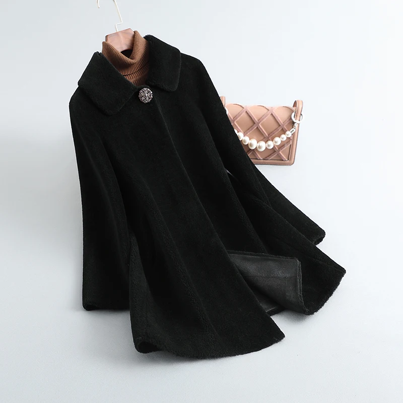 AYUNSUE New Winter 100% Sheep Shearing Jacket Women Elegant Wool Coats Fur Coat Women Mink Fur Collar Streetwear Manteaux Femmes