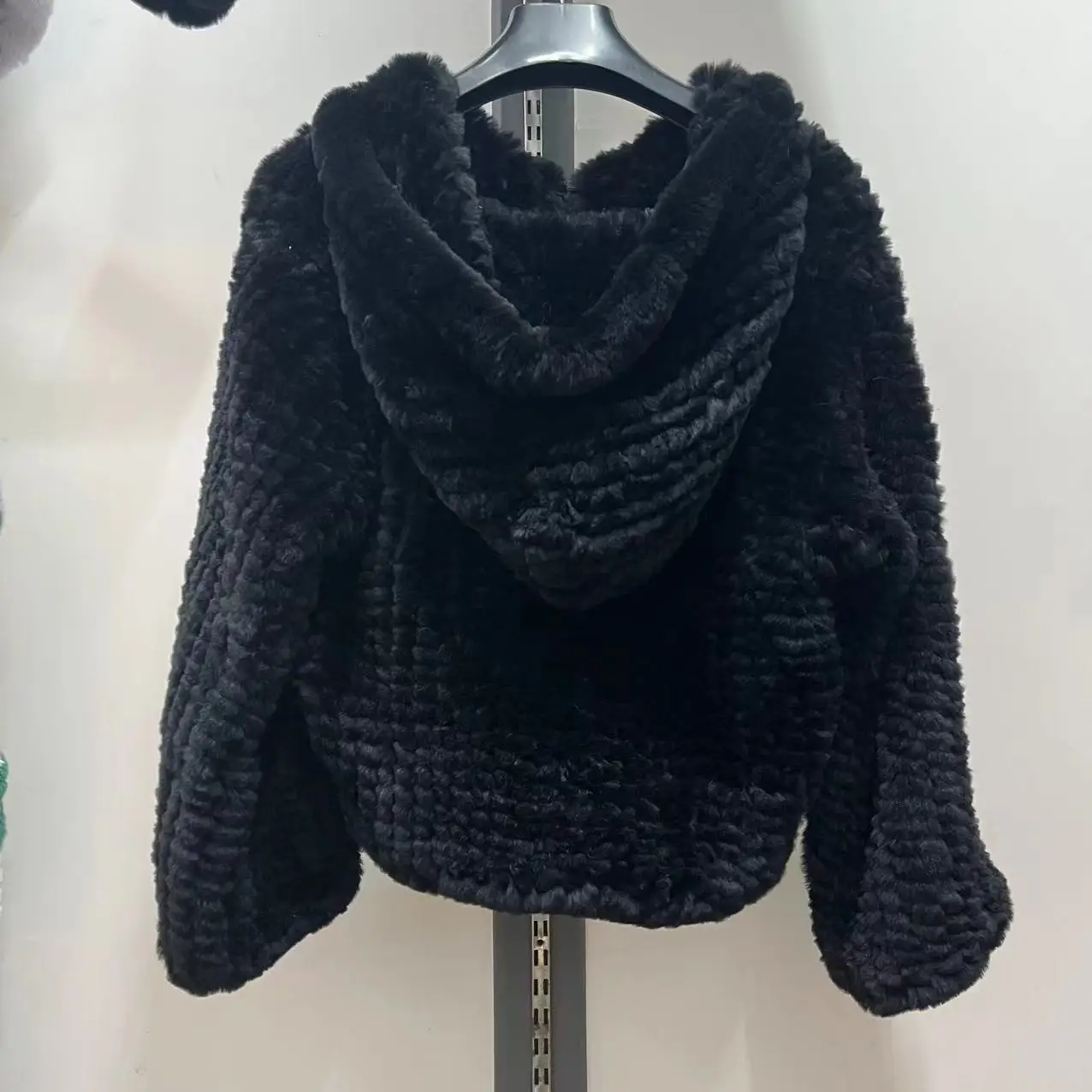 Furshehe Autumn Winter Women Real Rex Rabbit Fur Coat Knitted Jacket Hooded Double-side Thickened Manual Weave Streetwear