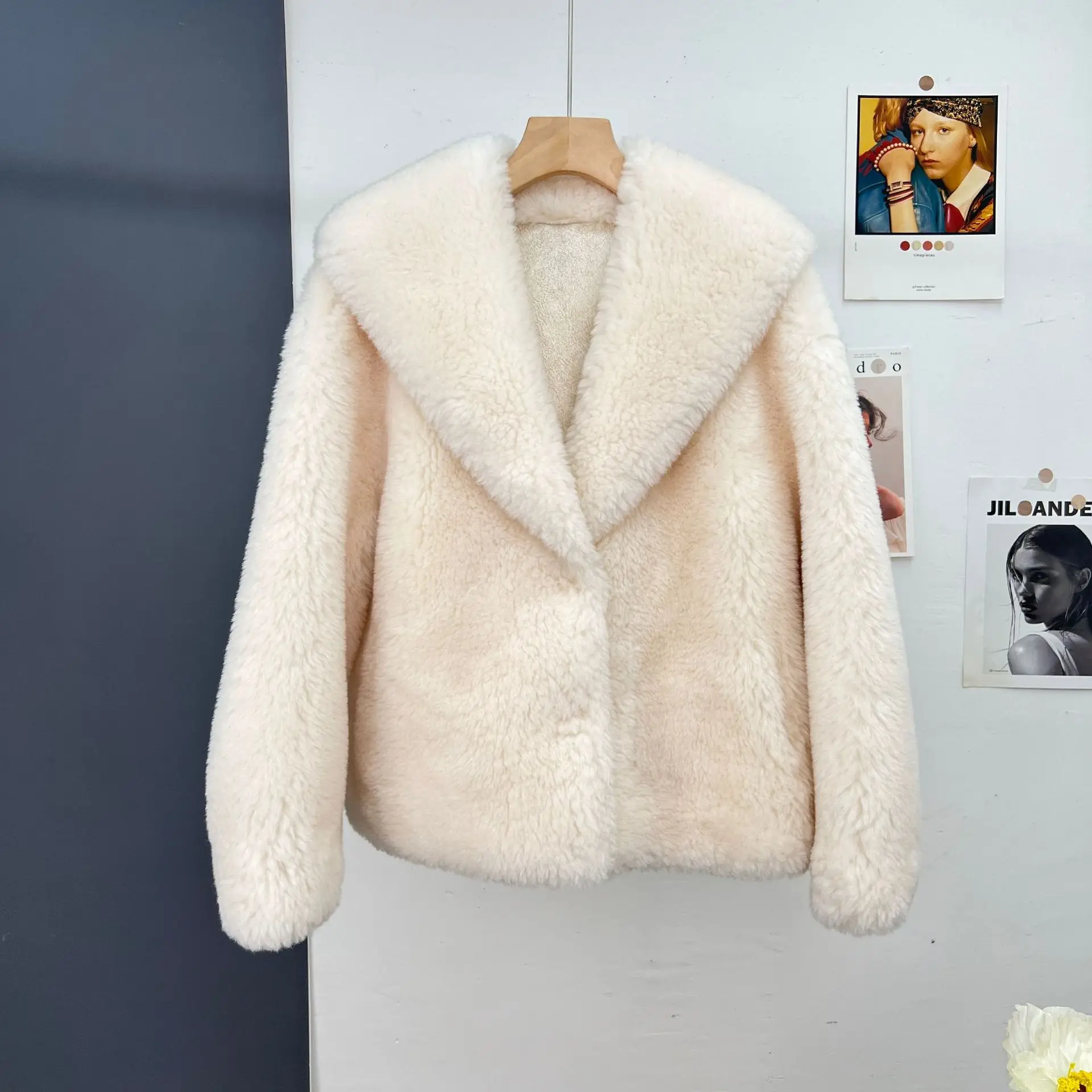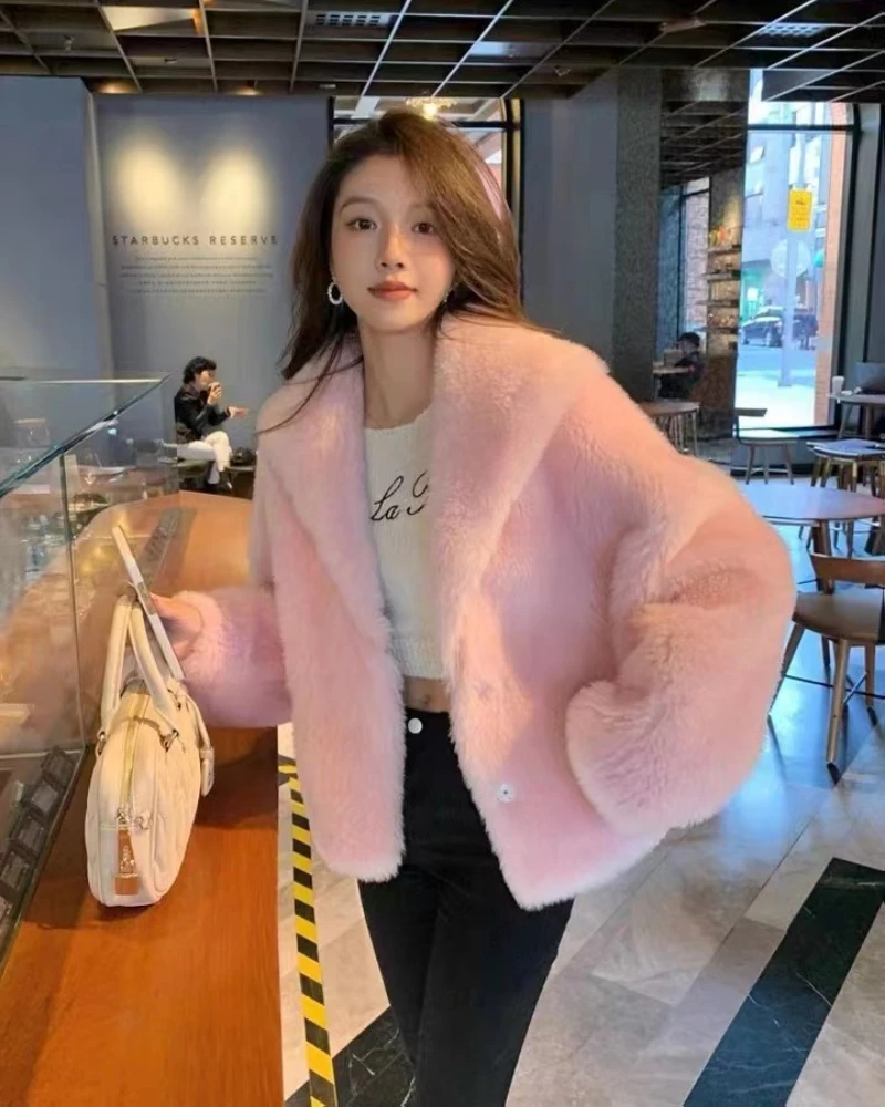 2023 New Autumn Winter Women Real Fur Coat 100% Wool Jacket Turn-down Collar Thick Warm Outerwear Fashion Luxury Streetwear