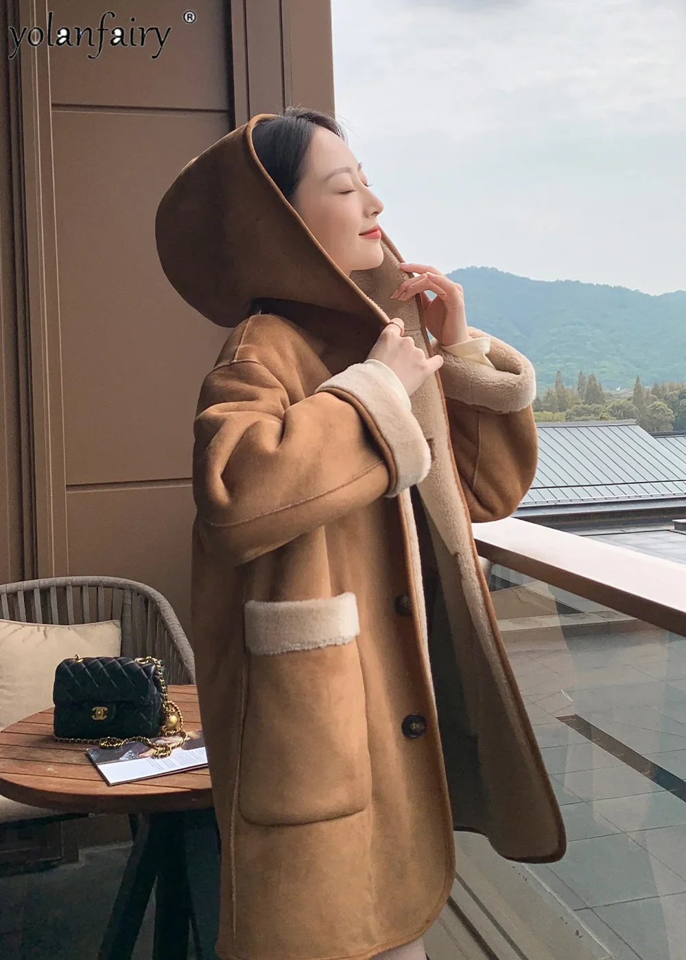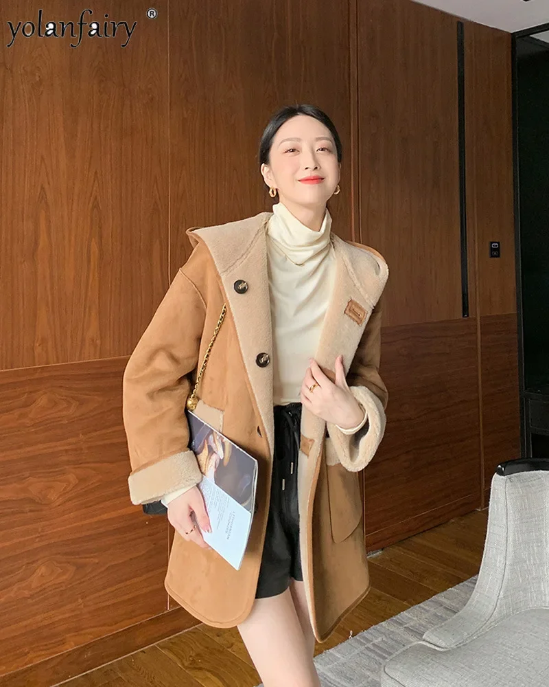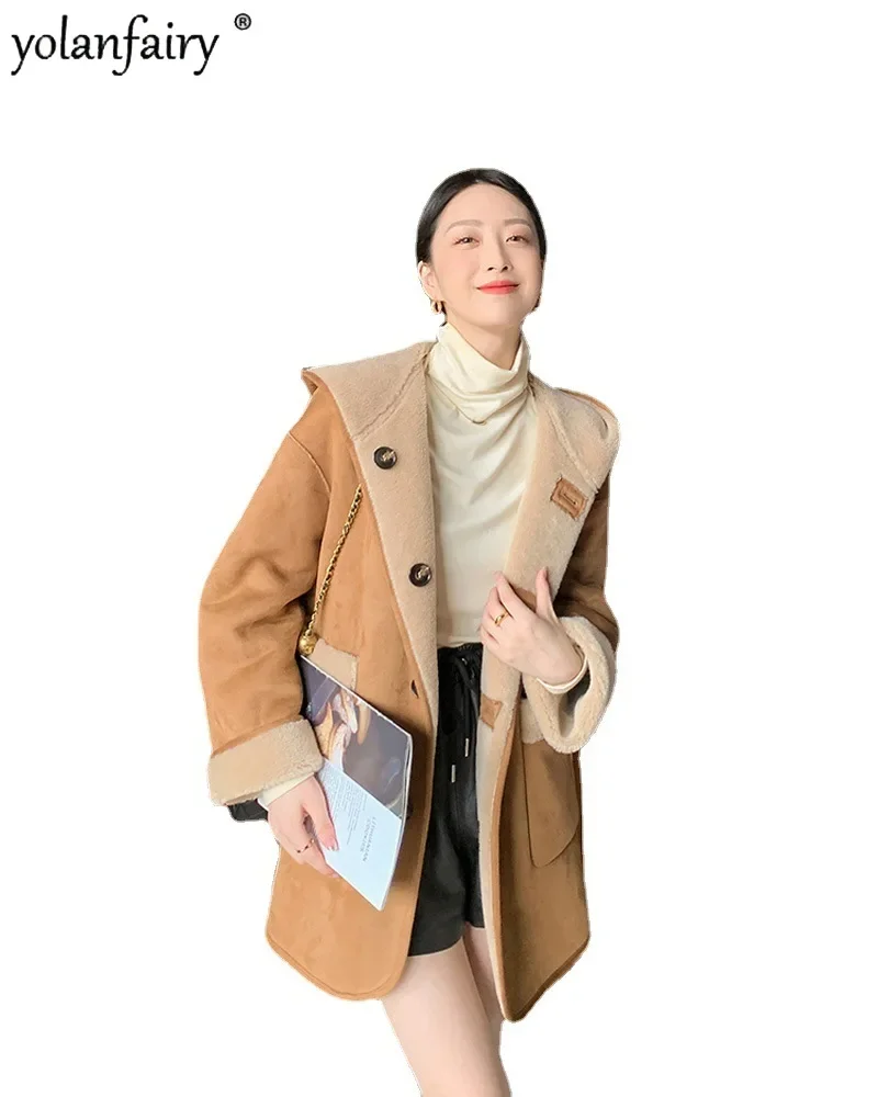 Reversible Garme Pure Wool Jackets for Woman Composite Fur Hooded Fur Coat Women 2023 Winter New Clothes Manteau Femme Hiver FCY