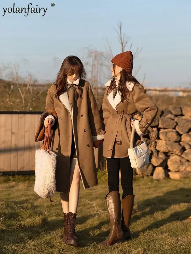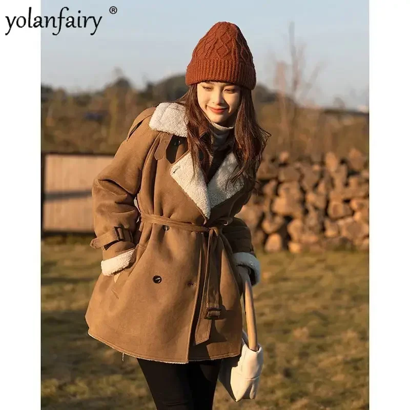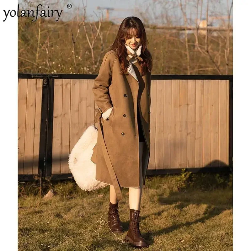 Lamb Fur Women Pure Wool Coat Women's Trench Coats Female Long Coat Autumn Winter 2023 New in Outwears Roupas Femininas FCY4947