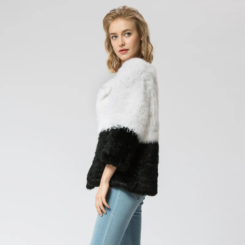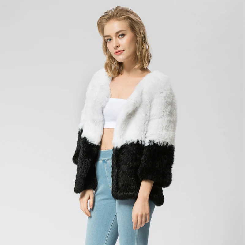 CR071 Knitted Real Rabbit Fur Coat Overcoat Jacket Russian Women's Winter Thick Warm Outer Wear