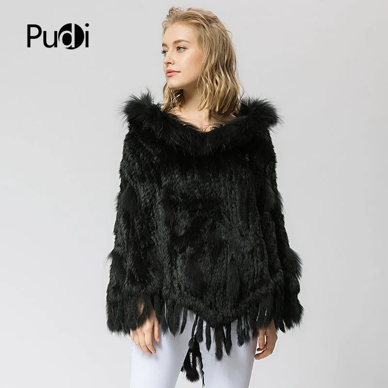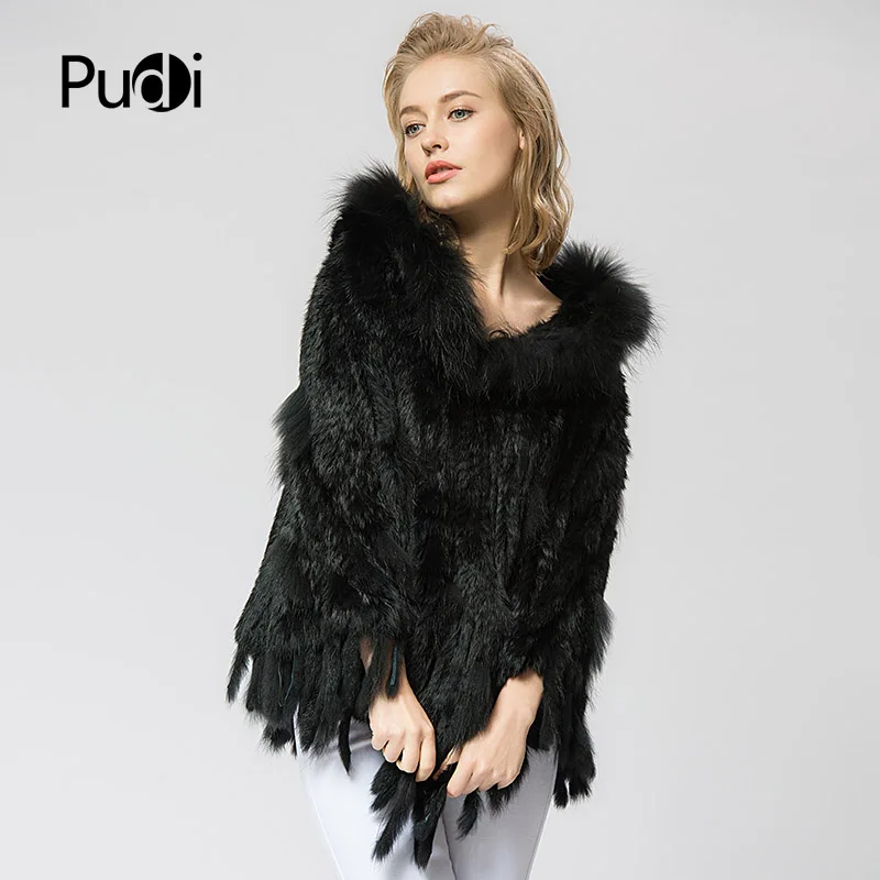 SRR003 Real Knitted Rabbit & Raccoon Fur Shawl Poncho Stole Shrug Cape Robe Tippet Wrap Women's Winter Warm Coat/outwear