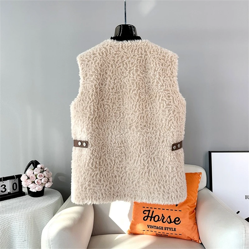 Female Full Wool Fur Vest Coat Sheep Shearling Undershirt Women Winter Casual Jacket JT431