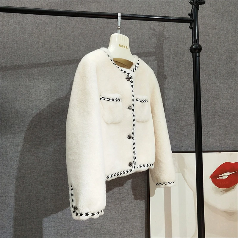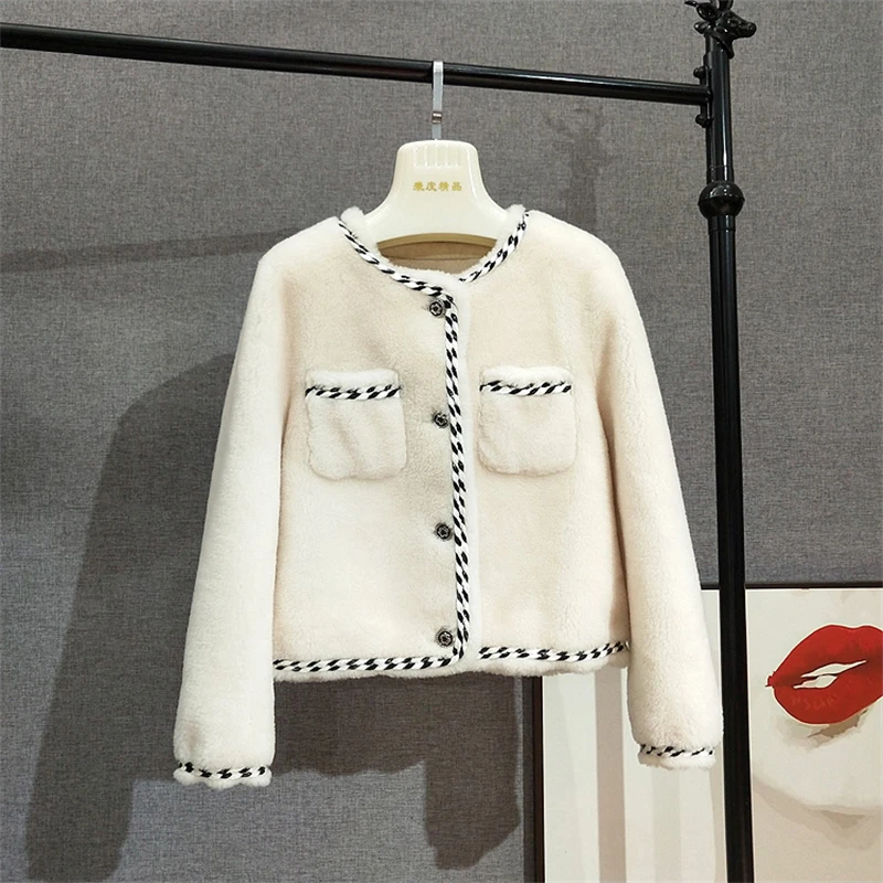 Lady's Lamb Fur Short Coats Women Girl 100% Real Wool Fur Warm Overcoat Parka JT3108