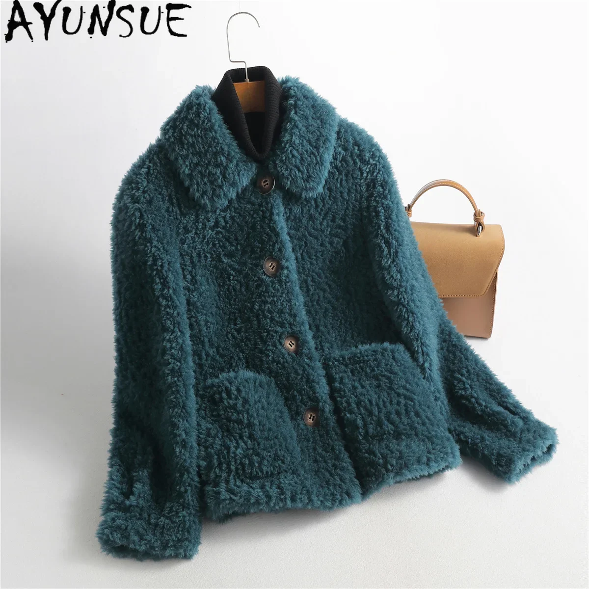 AYUNSUE Casual Sheep Shearing Jacket for Women Autumn Winter Single-breasted 100% Wool Coat Fashion Ladies Coats and Jackets