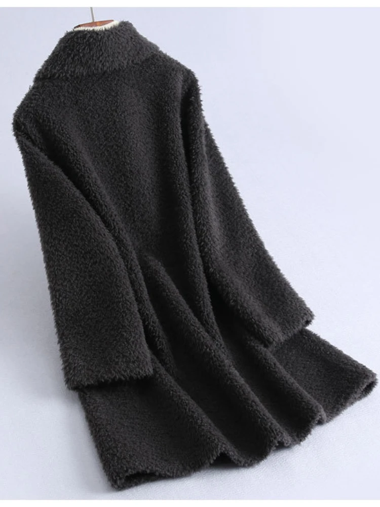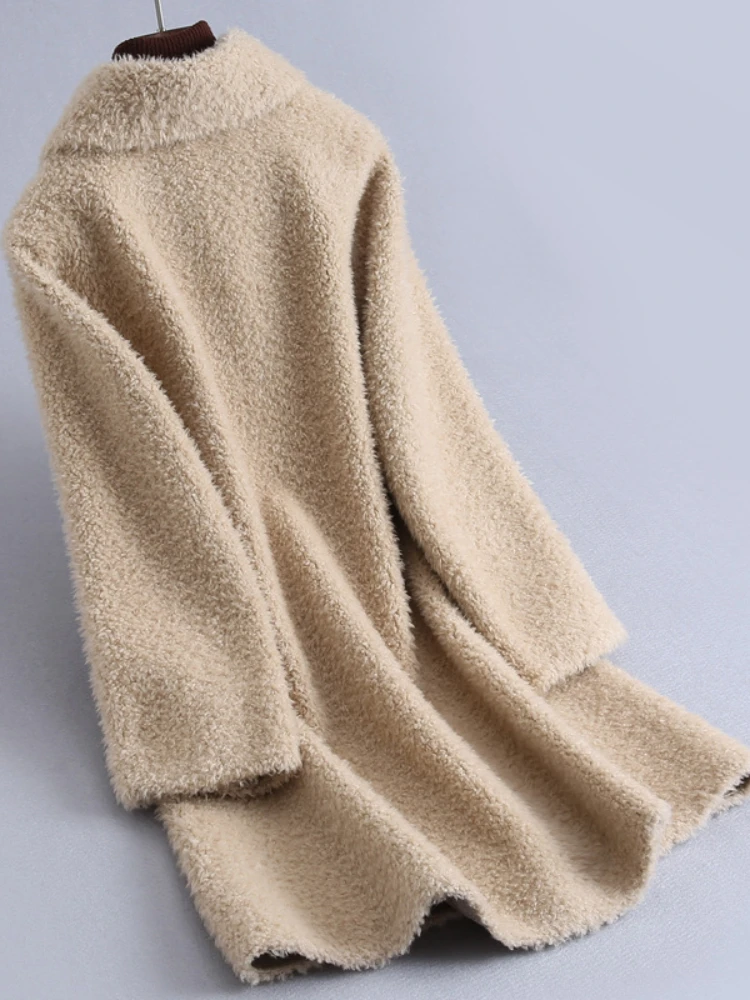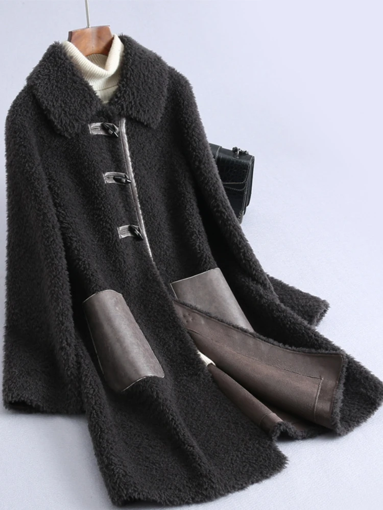 MENINA BONITA 2022 Winter Horn Buckle Women Fur Coat Grain Fleece Turn-duwn Collar Loose Thick Sheep Shearing Lamb Fur Warm Coat