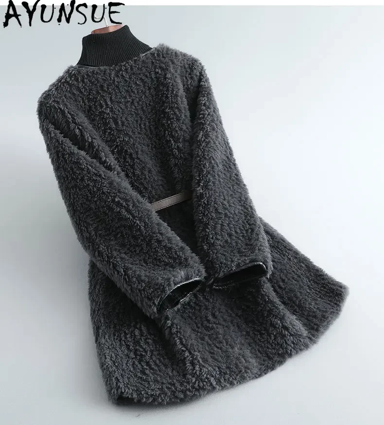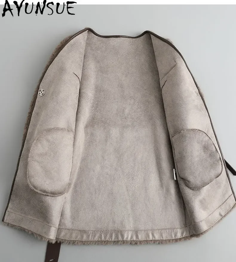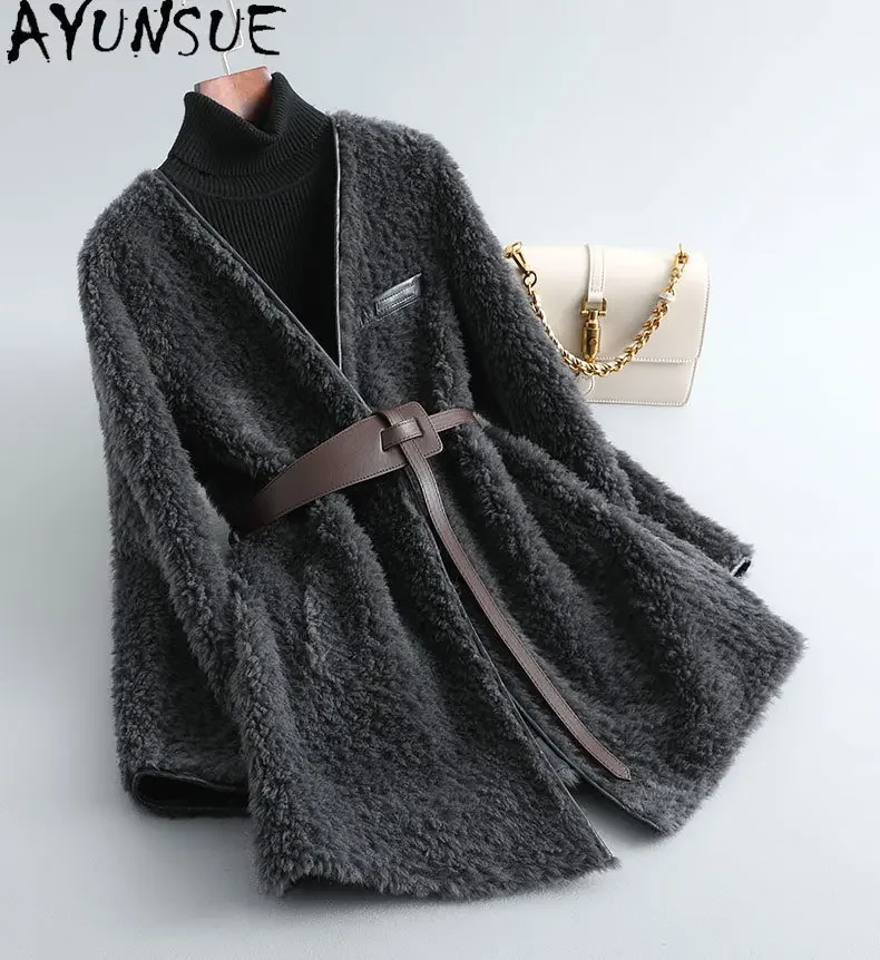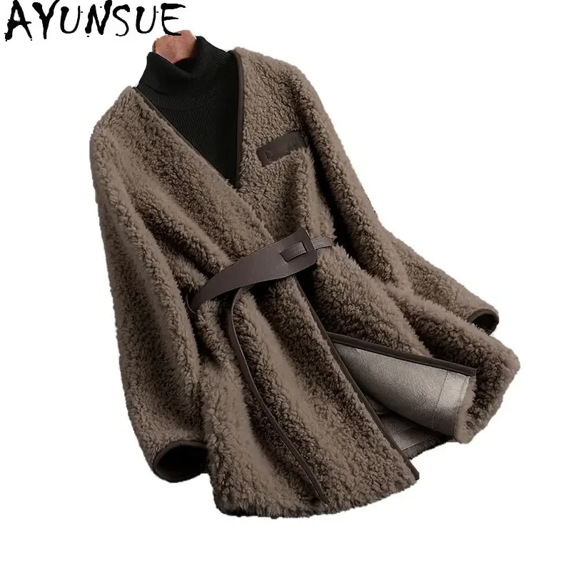 Elegant 100% Wool Jackets For Women 2024 Autumn Winter Sheep Shearing Jacket Women Fur Coat V-neck Wool Coats Jaqueta Feminina