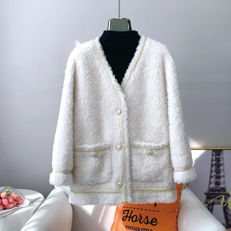 Women Gir Real Wool Fur Elegant Coats Female Lady Sheep Shearling Warm Jacket Winter Overcoat JT3160