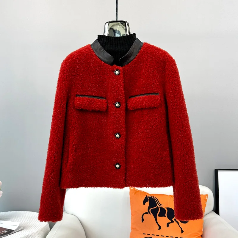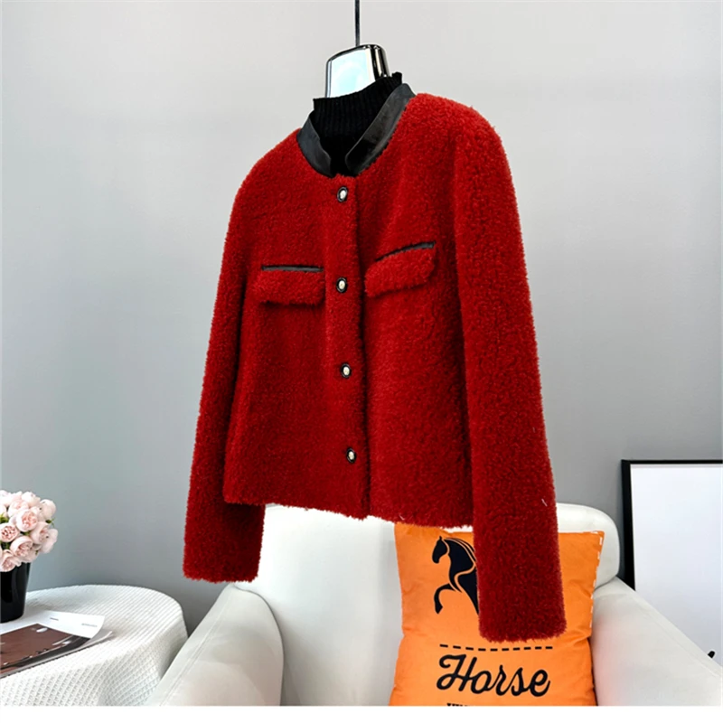 2023 New Winter Fur Coat Women's Thick Warm Real Fur Lamb Wool Short Style Sheep Shearling Jacket JT3417
