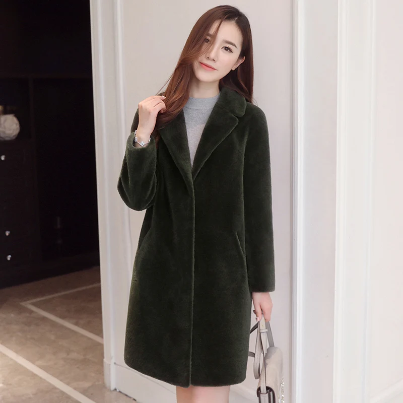 2020 Fashion Women's Winter Jacket Real Wool Fur Coat Sheep Shearing Fur Coats Medium Long Trench Female Outwear S939