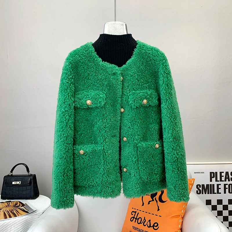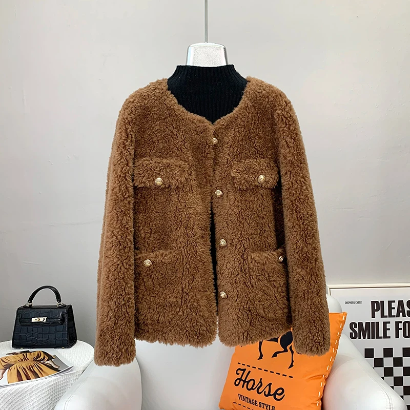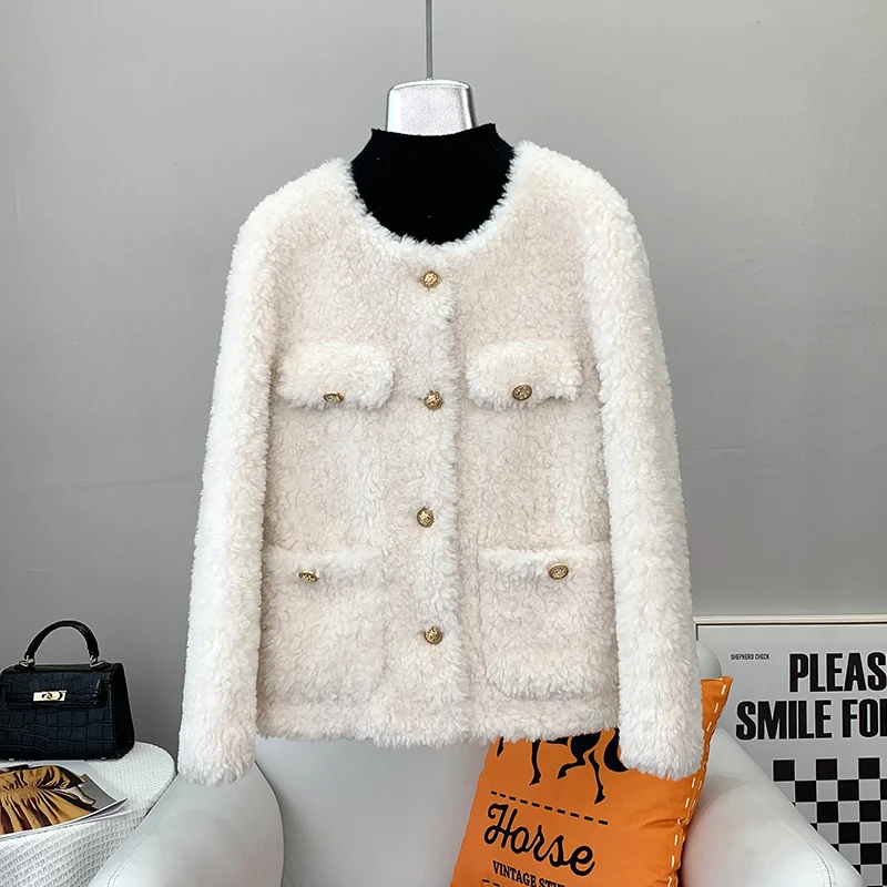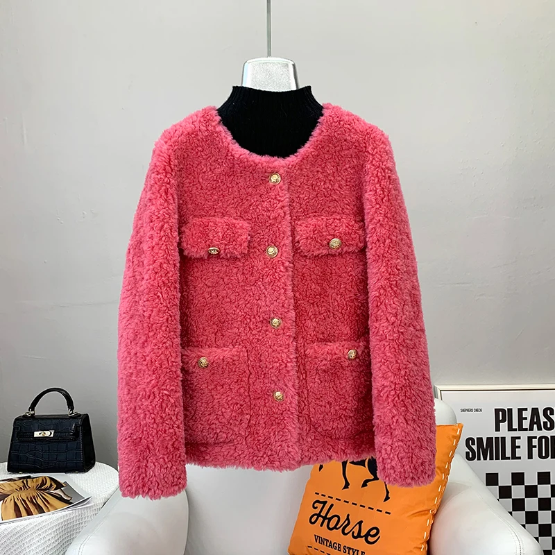 Women Girl Lamb Wool Fur Elegant Coats Female Lady Sheep Shearling Youth Overcoat Warm Jacket JT3260