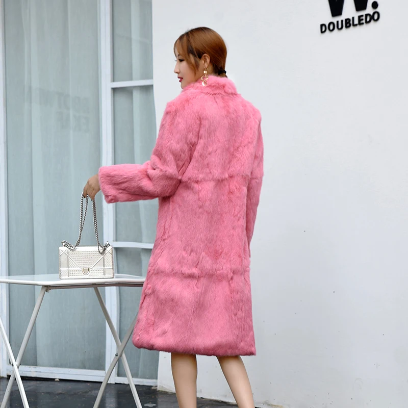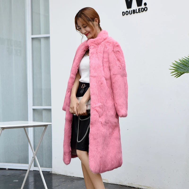 Furshehe Winter Women Real Rabbit Fur Coat 110cm Long Natural Fur Jacket Big Size S-8XL Thick Warm Overcoat Female Streetwear