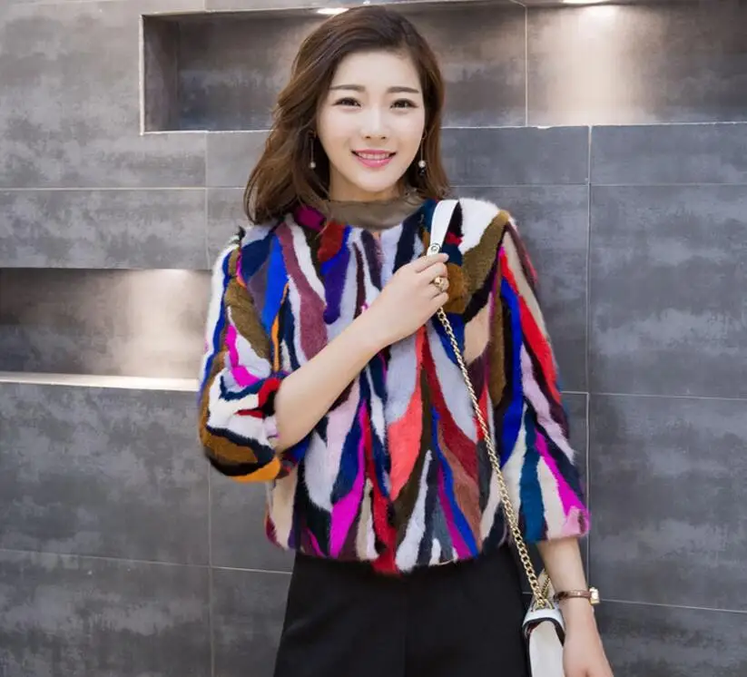 High Quality genuine mink fur short coat patchwork mix colors natural mink fur jacket customize plus big size wholesale