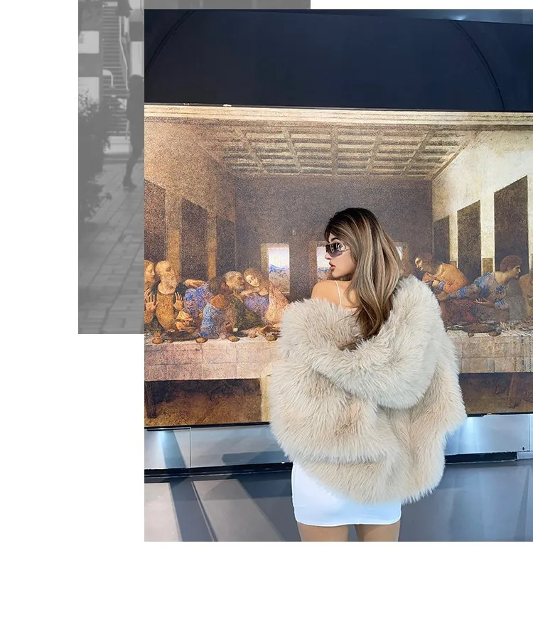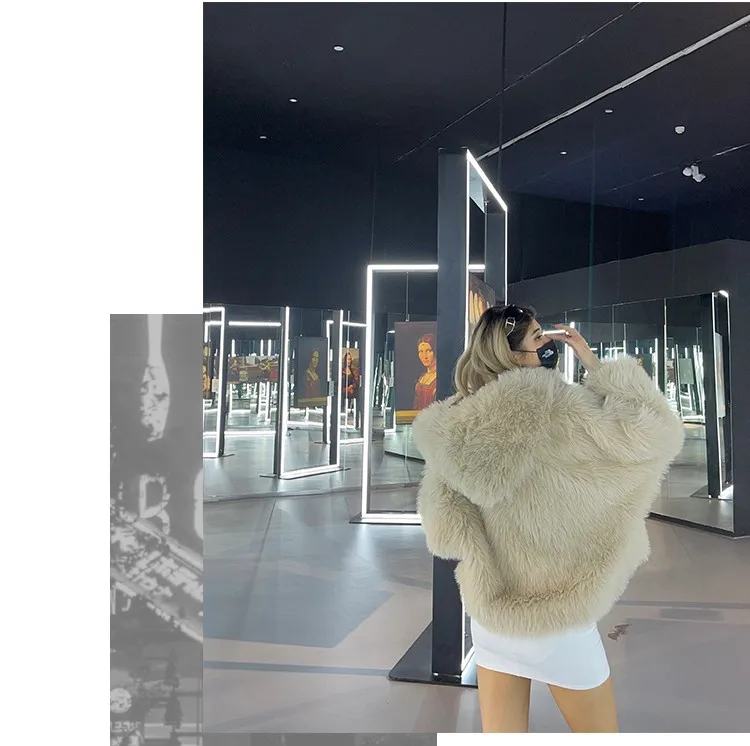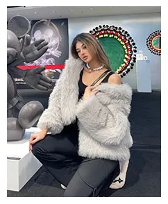 new Faux fur solid color hooded fashion loose hooded medium length fur coat winter coat