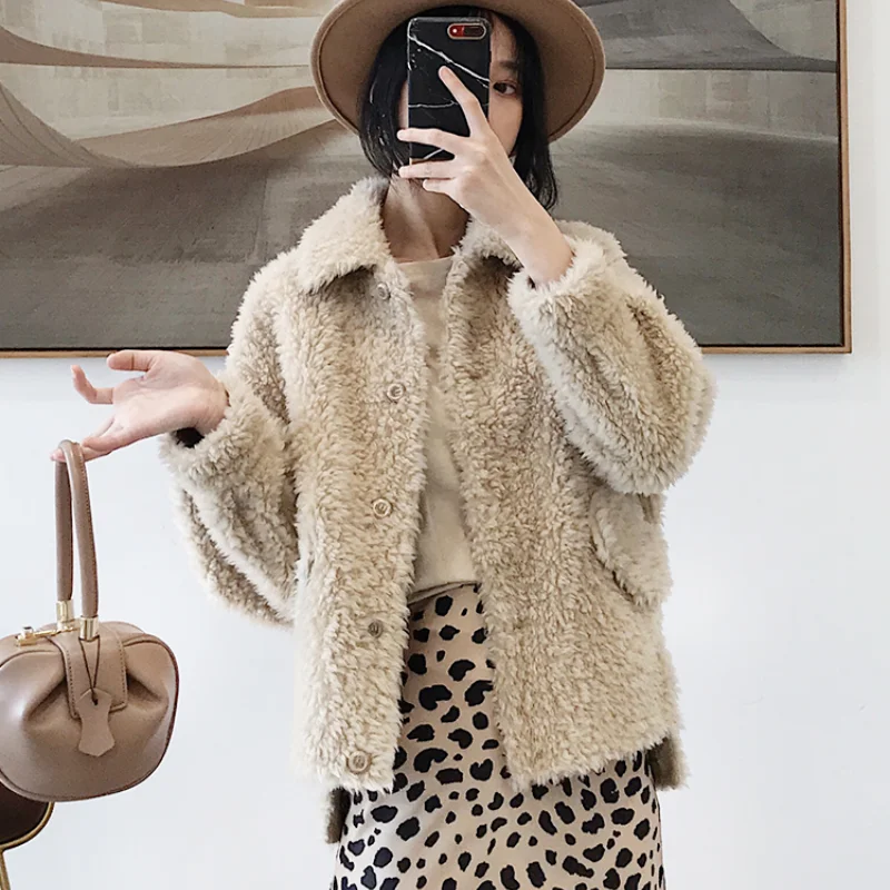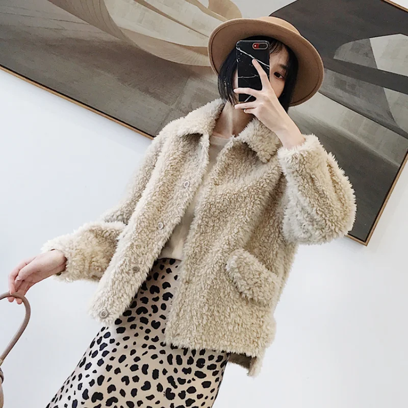 AYUNSUE 100% Sheep Shearing Jacket Women Real Fur Coat Famale Short Casual Wool Jackets Korean Style Manteau Femme Hiver Sqq1193