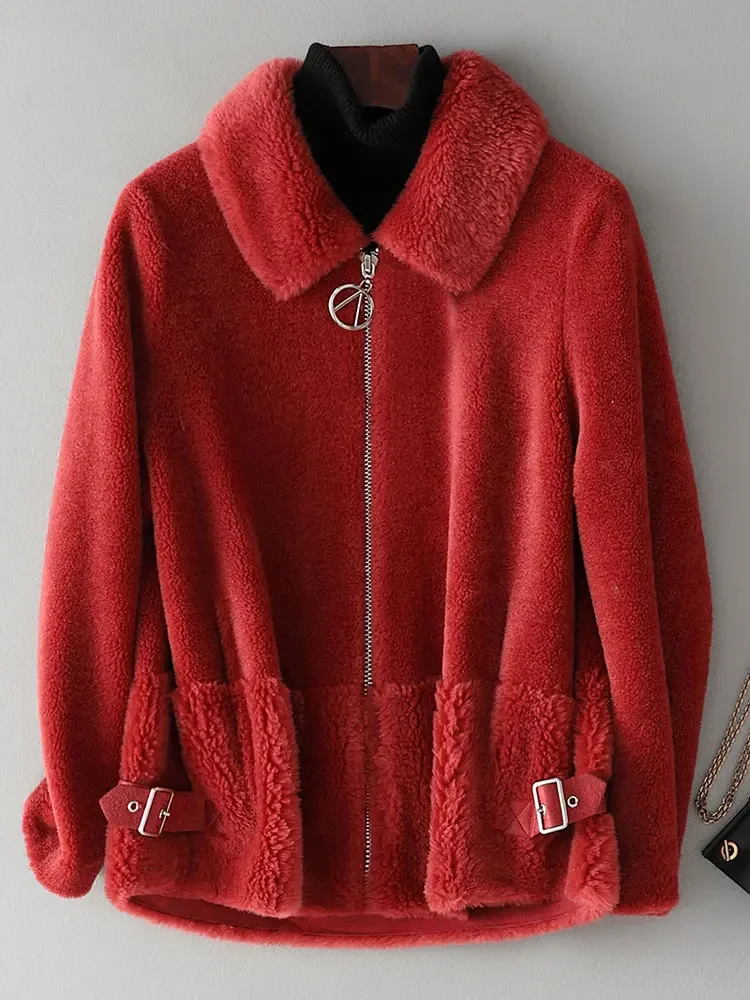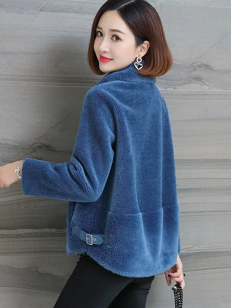 Elegant Short Sheep Shearing Jacket Women 100% Wool Coats For Women 2024 Autumn Winter Fur Coats Fashion Wool Jackets Abrigos