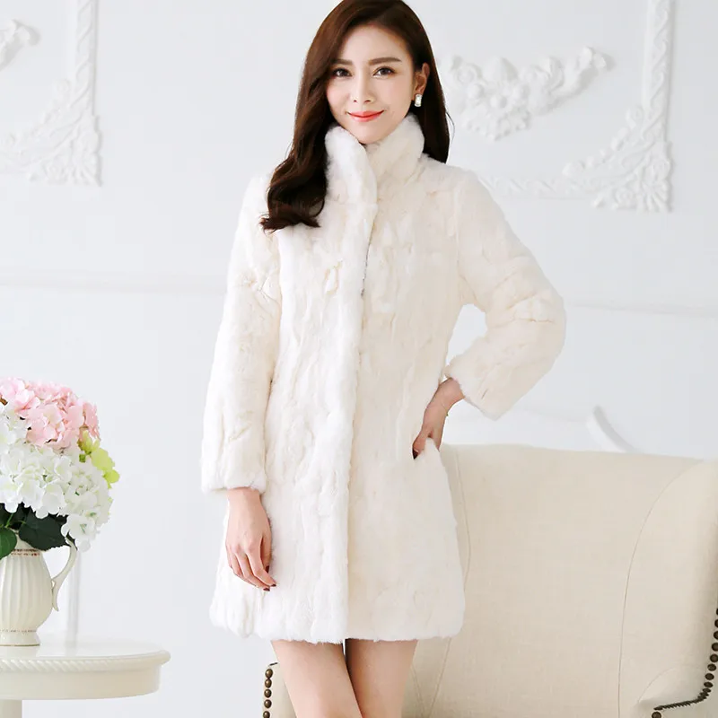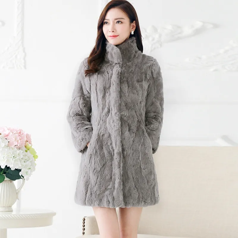 2023 Real Boollili Rex Rabbit Fur Coat Womens Natural Fur Coats Winter Warm Jackets For Women Long Slim Outerwear