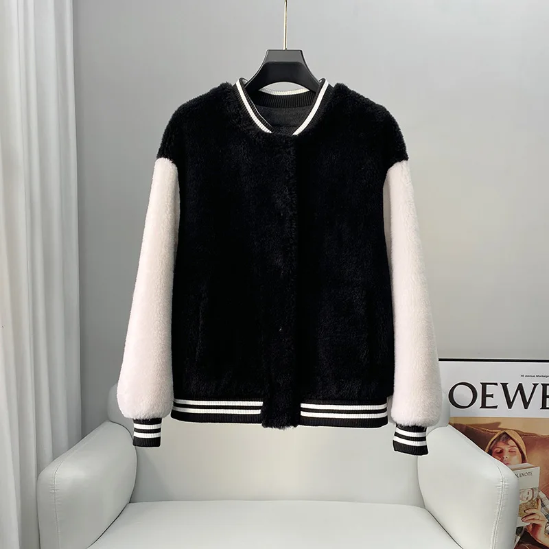 PUDI New Fashion Design Genuine Wool Fur Winter Baseball Uniform Women Coat CT209
