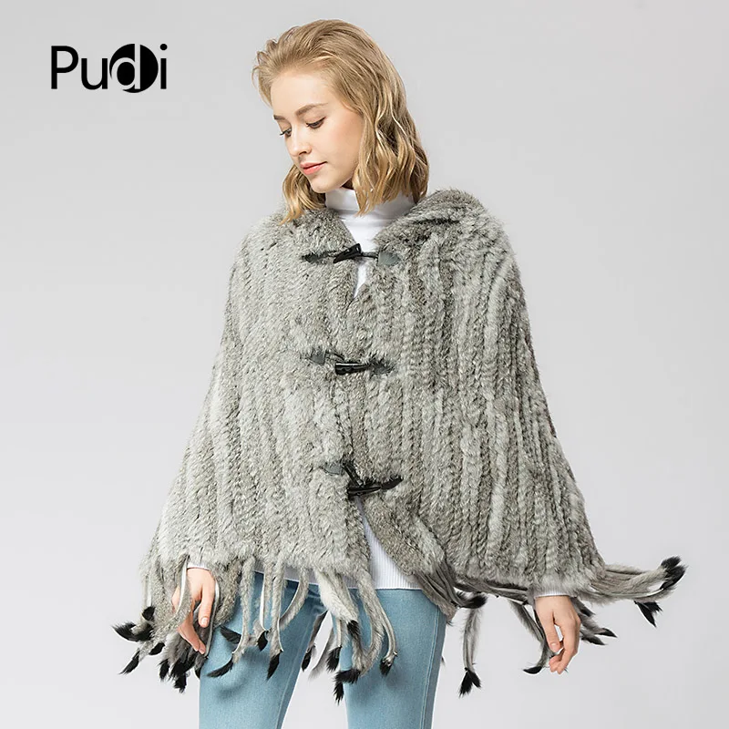 SRR001 Real Knitted Rabbit Fur Shawl Poncho Stole Shrug Cape Robe Tippet Wrap Russian Women's Winter Warm Coat/outwear