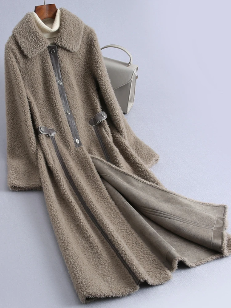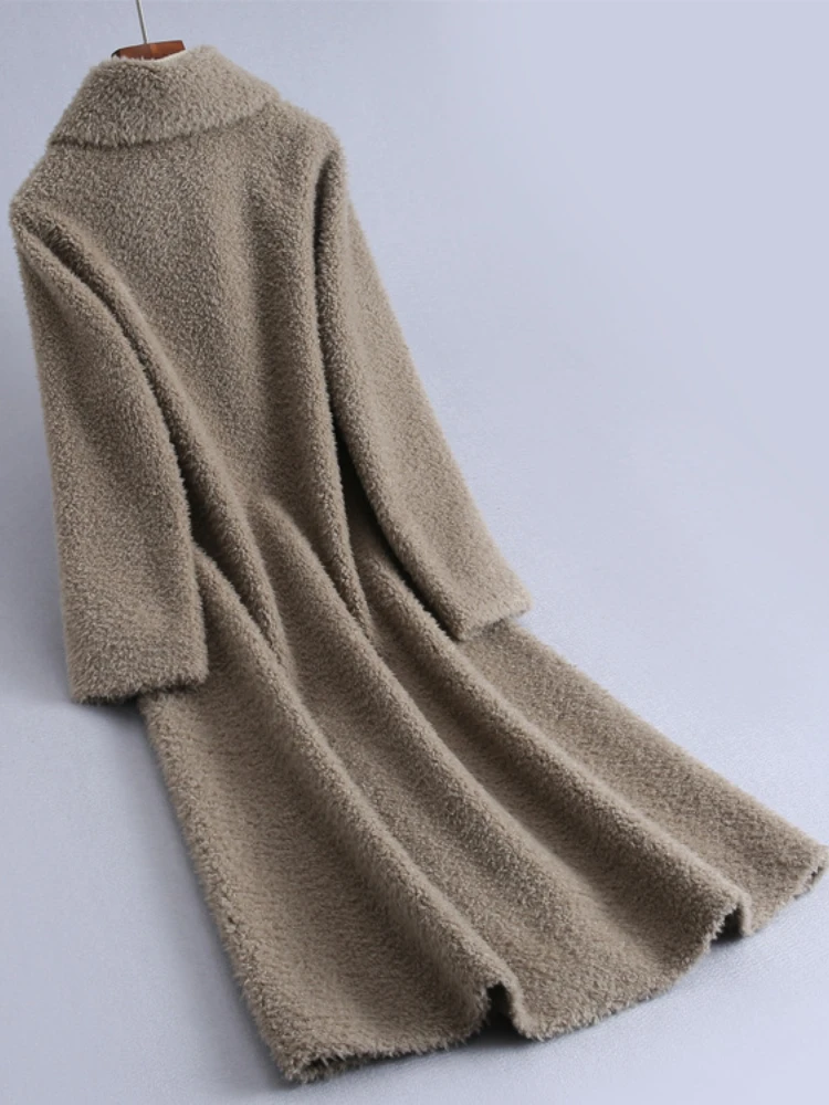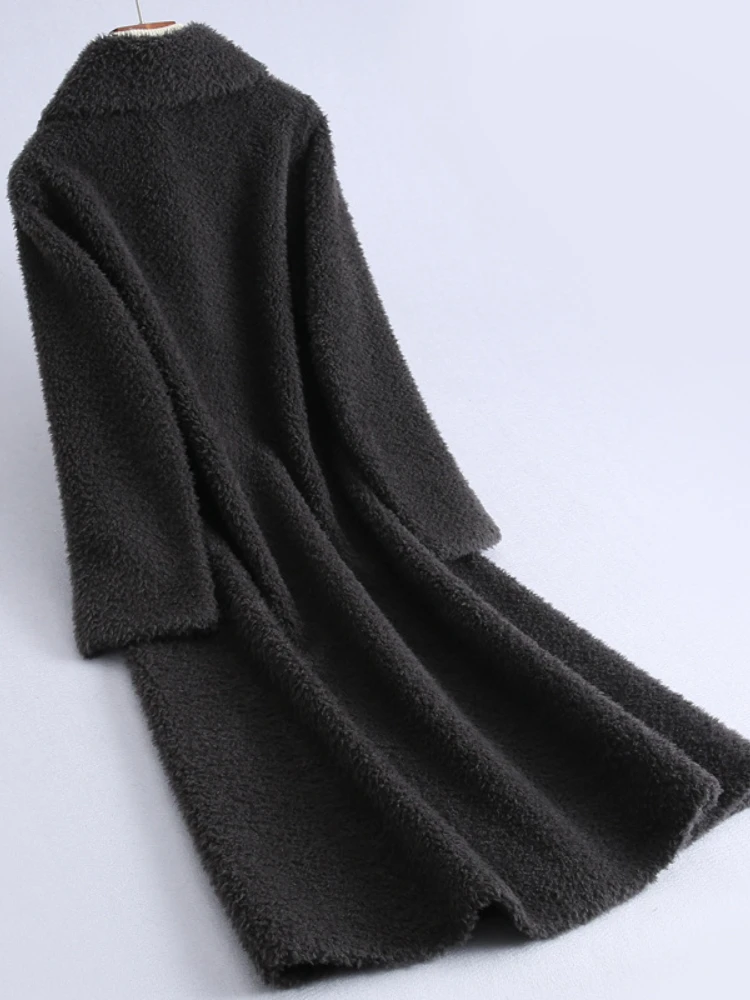 MENINA BONITA 2022 Suede Liner Grain Fleece Lamb Fur Warm Coat Winter X-Long Women Luxury Loose Thick Sheep Shearing Fur Coat