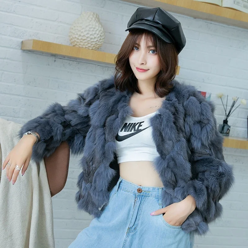 Fashion Autumn Winter High Quality Real Fox Fur Coat Women 2024 Vintage Long Sleeve Slim Short Jackets Furry Femme Y900
