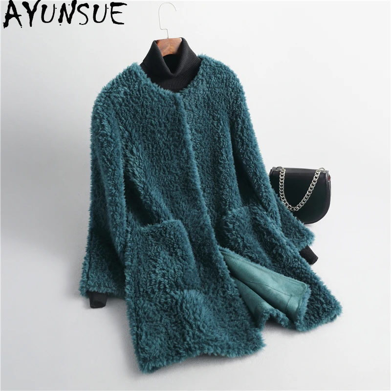 AYUNSUE Women's Fur Coat Autumn 2021 Winter Jacket Women Real Sheep Shearling Coats Female Wool Jackets Jaqueta Feminina Gxy589