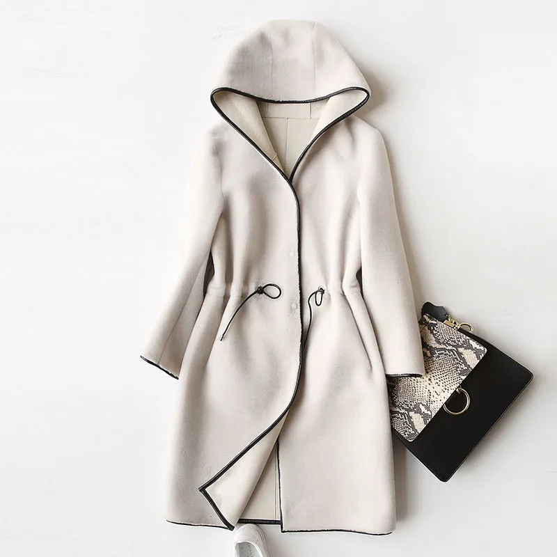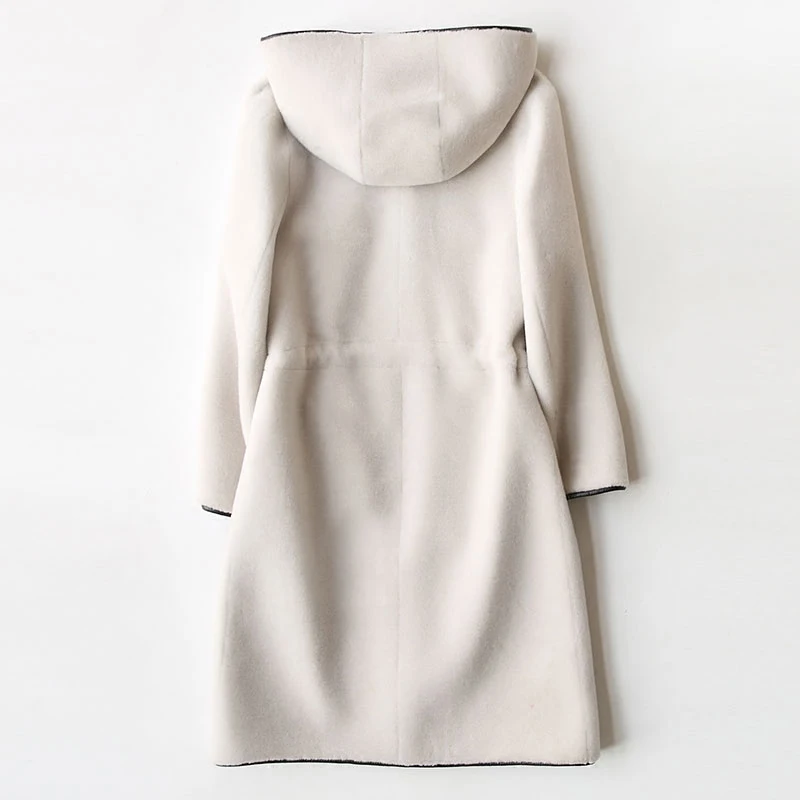 New Wool Real Fur Coat For Women Winter Sheep Jackets And Coats Long Hooded PU Leather Lining Overcoat 37952 WYQ757