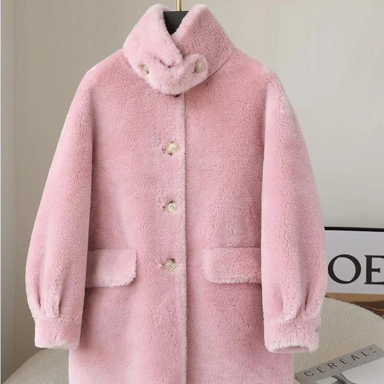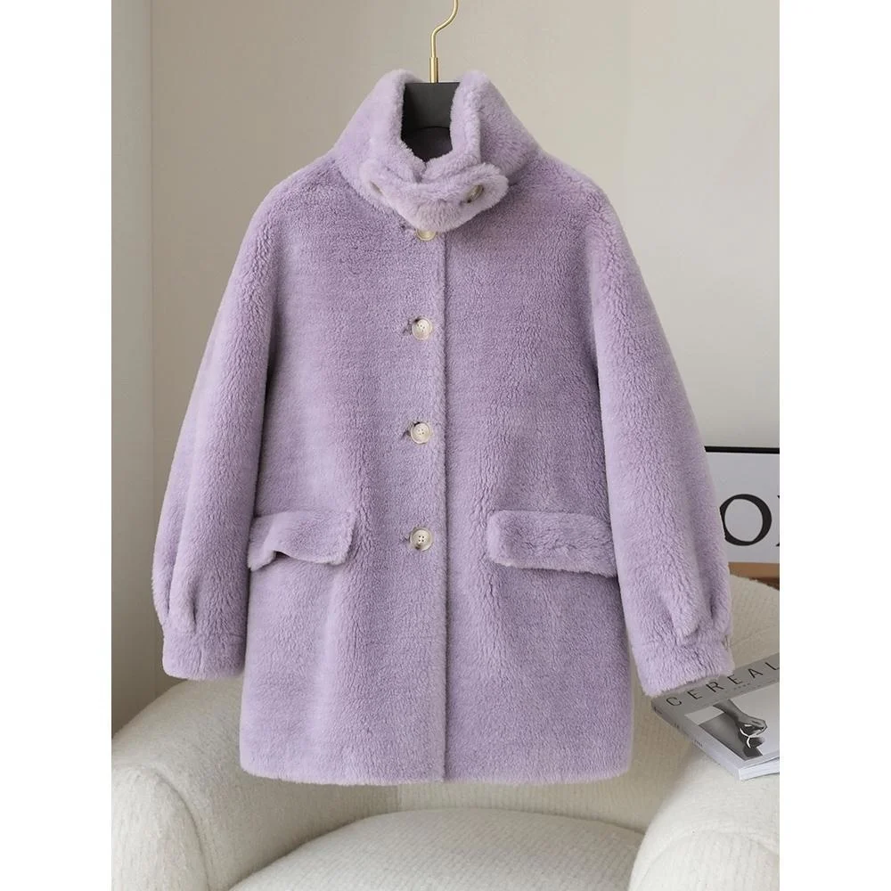 Autumn Women 2023 Winter Fashion Genuine Lamb Fur Coats Female Stand Collar Warm Jackets Ladies Sheep Shearing Overcoats Q29
