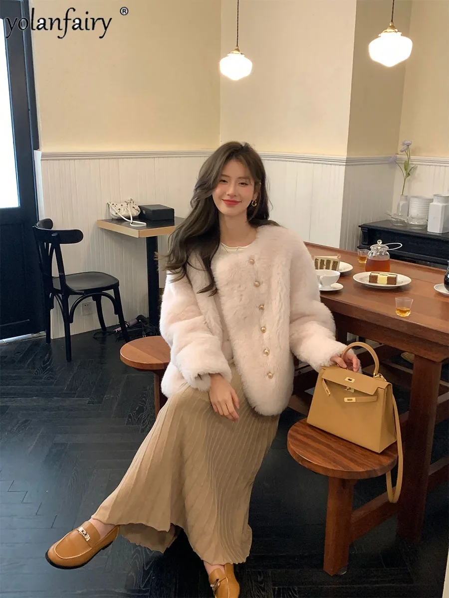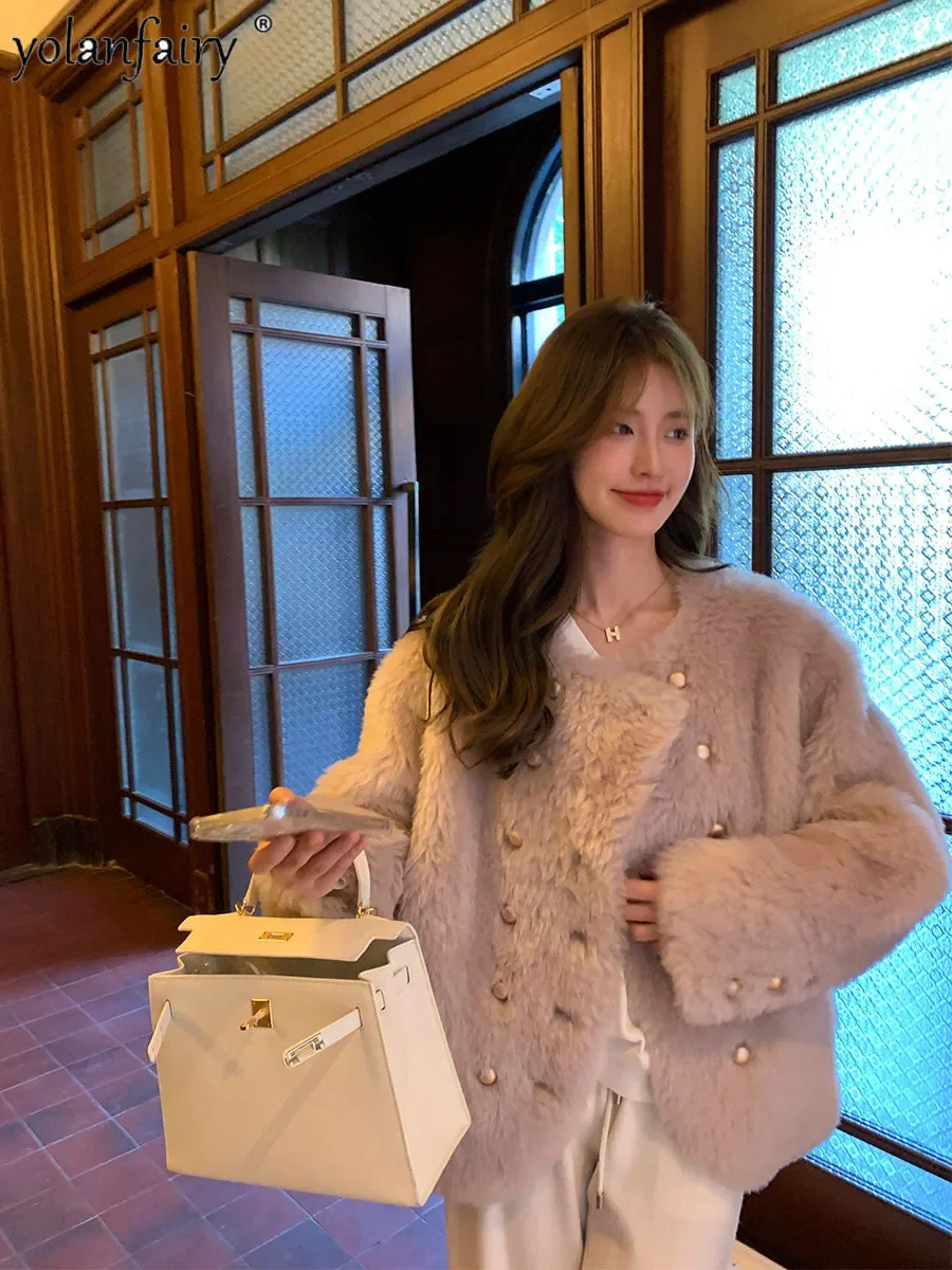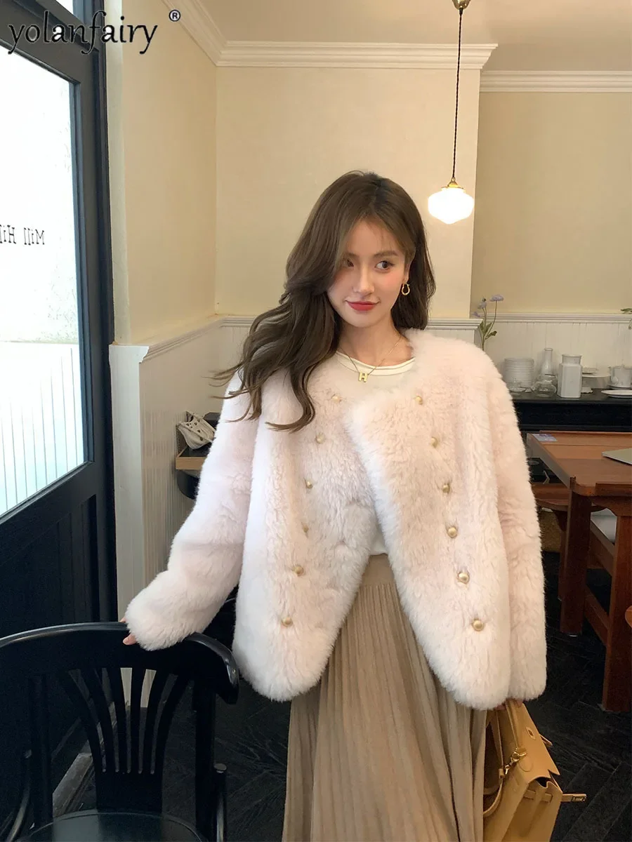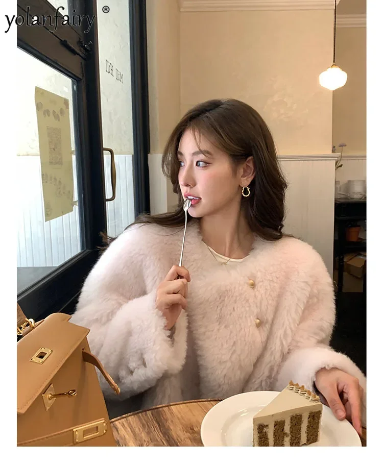Pure Wool Fur Coat Women's Jacket 2023 Autumn Winter New Sheep Shearing Coats Female Clothing Short Fur Jackets Gold Button FCY