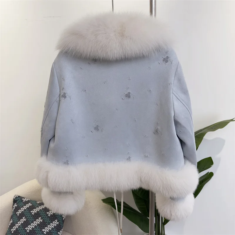 2023 New Fashion Women Winter Down Jacket Real Fur Coat Long Sleeve Warm Loose Female Luxury Fox Fur Collar Detachable Outwear