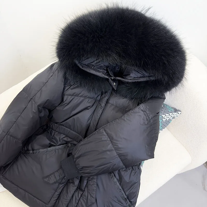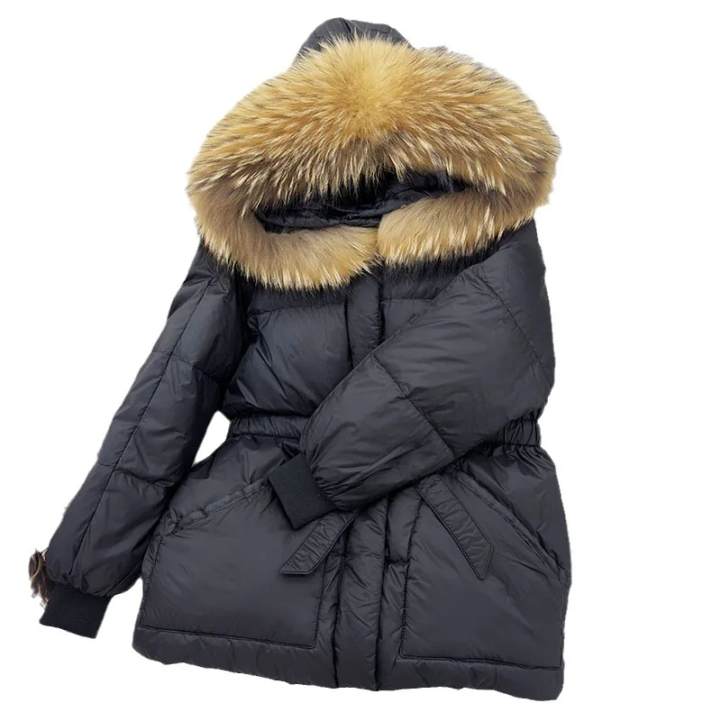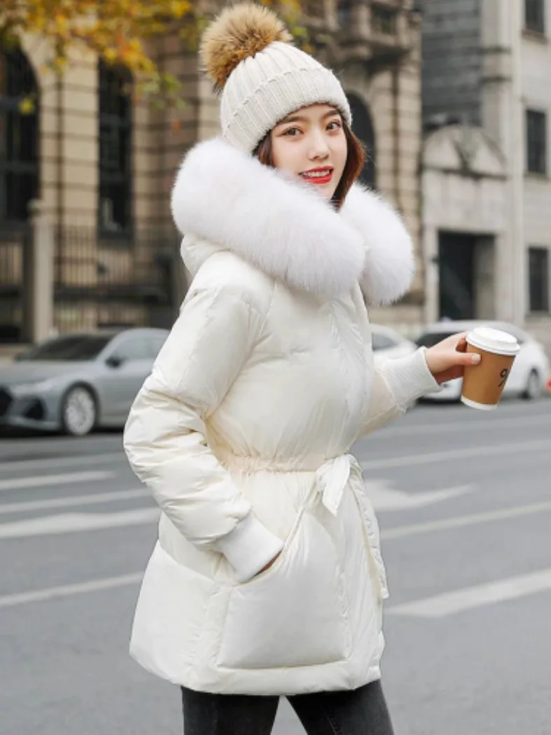 Winter new mid length slimming down jacket Korean version hooded 90 white duck down slim fit waist small down jacket for women20