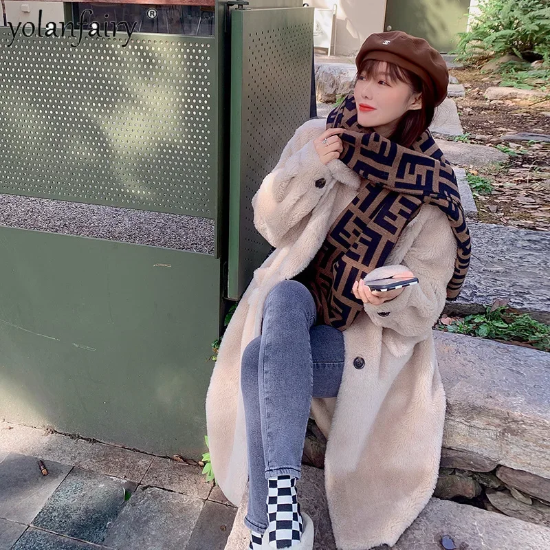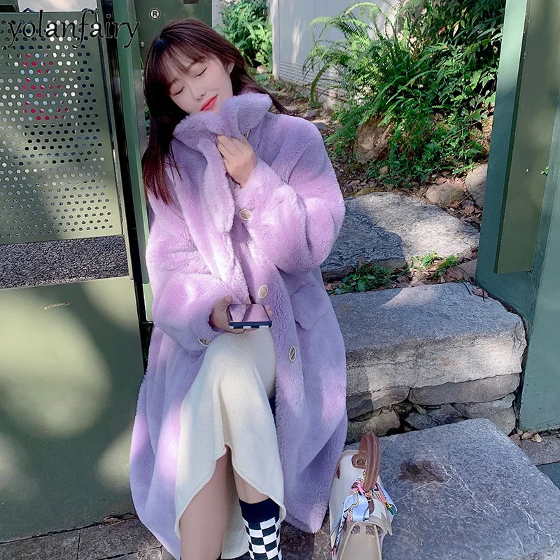 Fashion Real Lamb Fur Coat Women Fur Integrated Coats for Woman 2023 New Pure Wool Jacket Mid Long Women's Winter Jacket FCY4937
