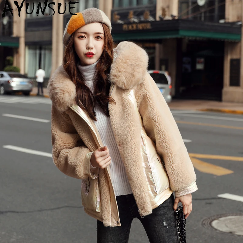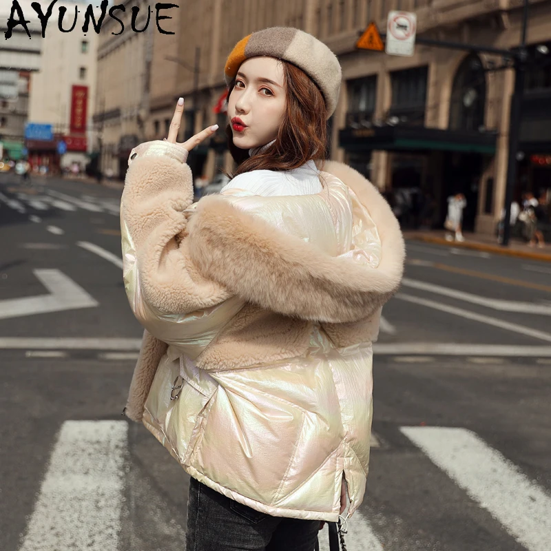 AYUNSUE Women's Fur Coat Warm Winter Female Jacket 90% White Duck Down Jackets Fox Fur Collar Hooded Clothes 2020 Abrigo Mujer